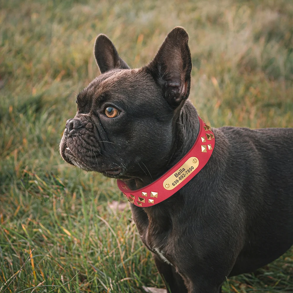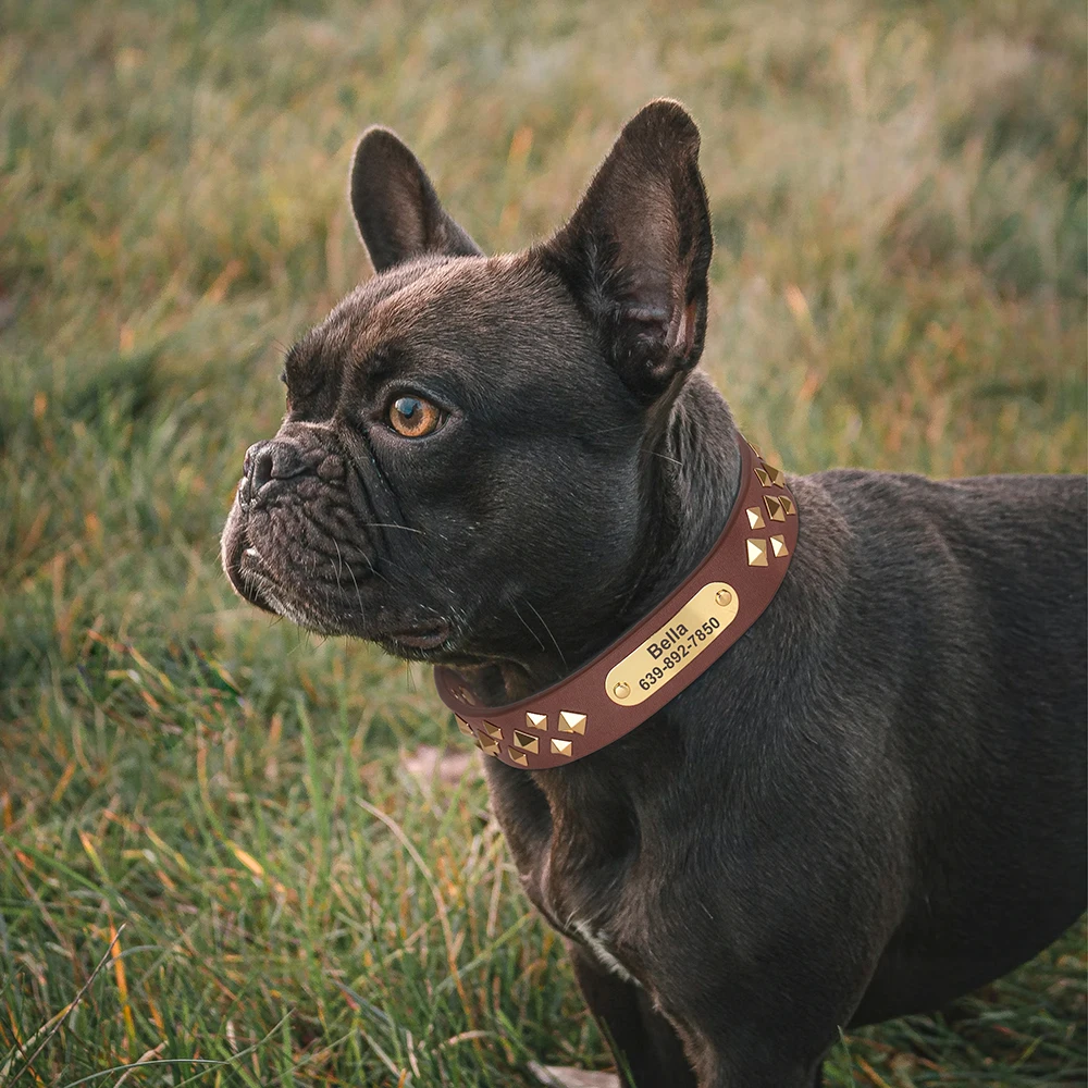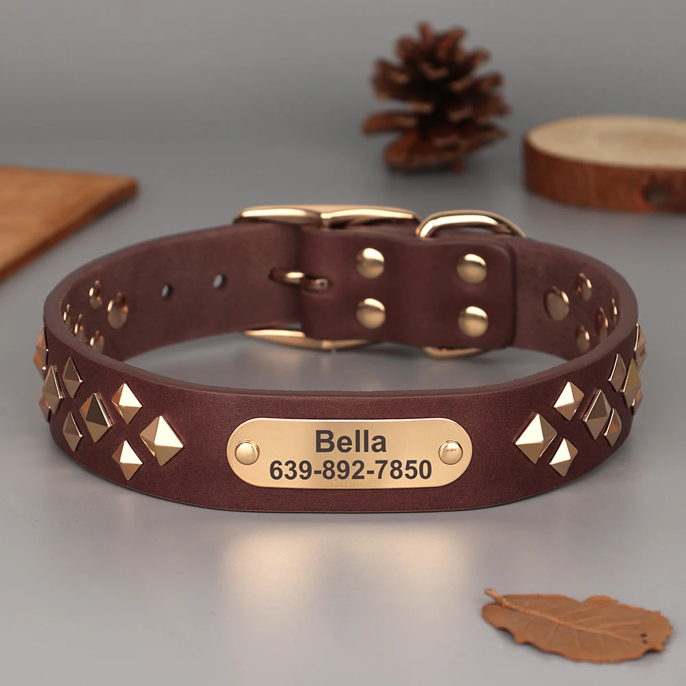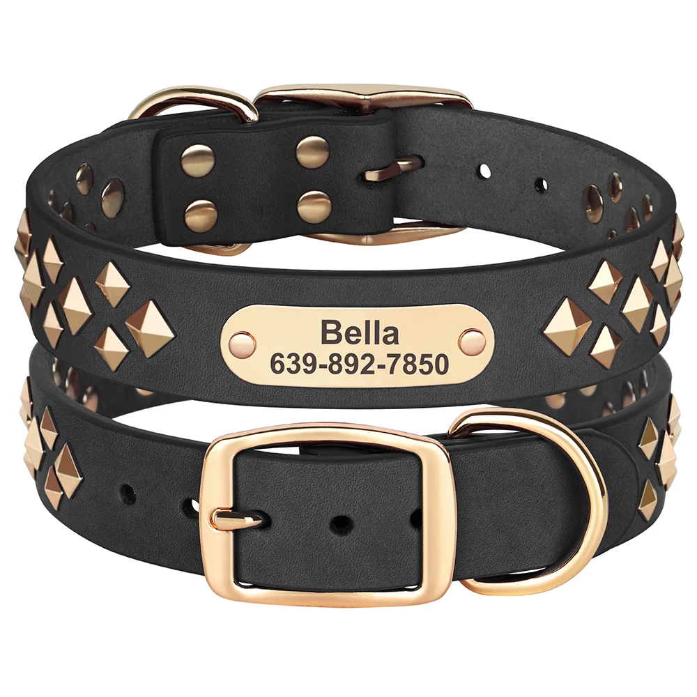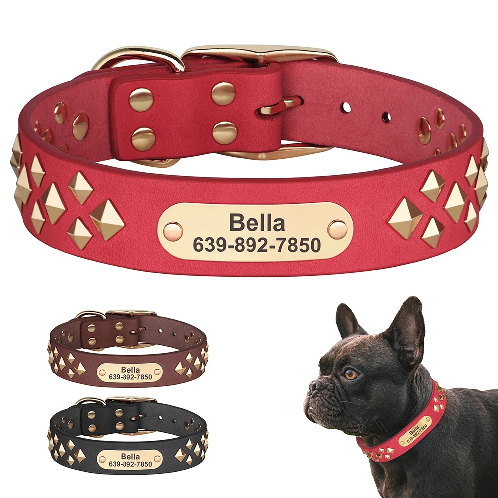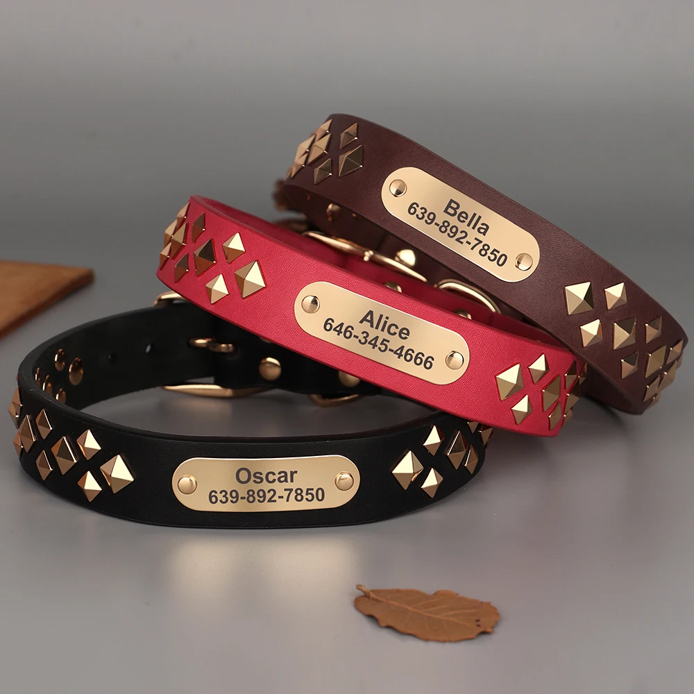 Collar personalizado de cuero para perro, collares de identificación de mascotas con tachuelas y pinchos, collares de Bulldog Pitbull, collar para Show de Bulldog Pitbull