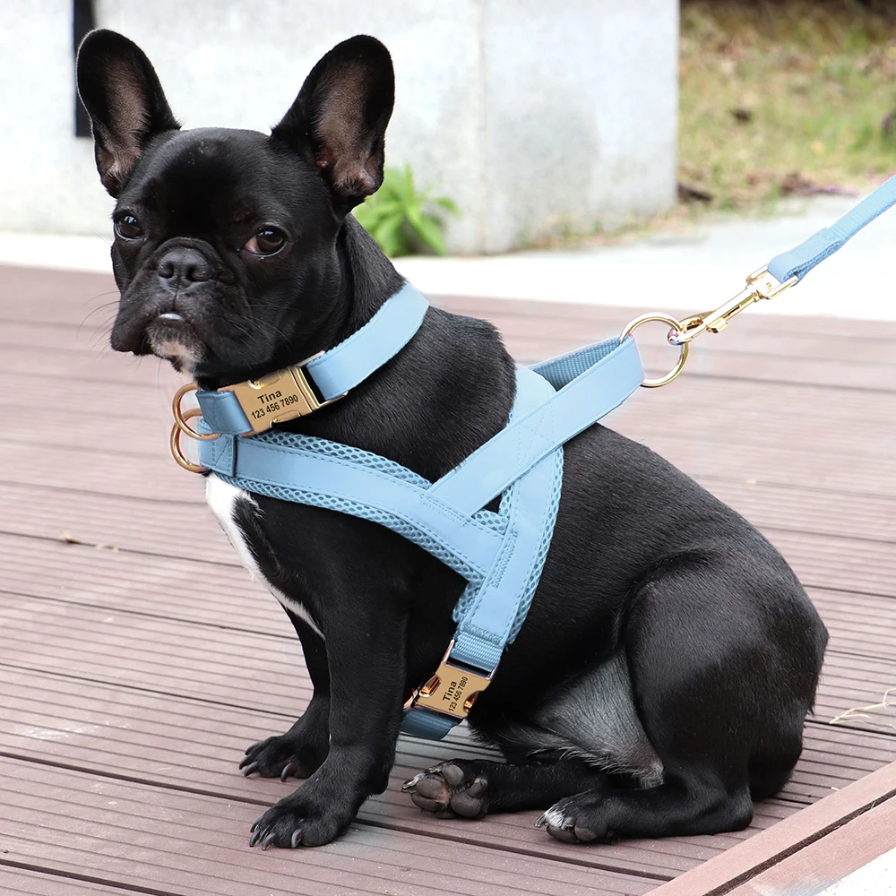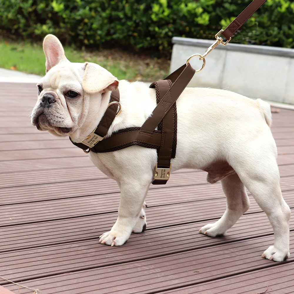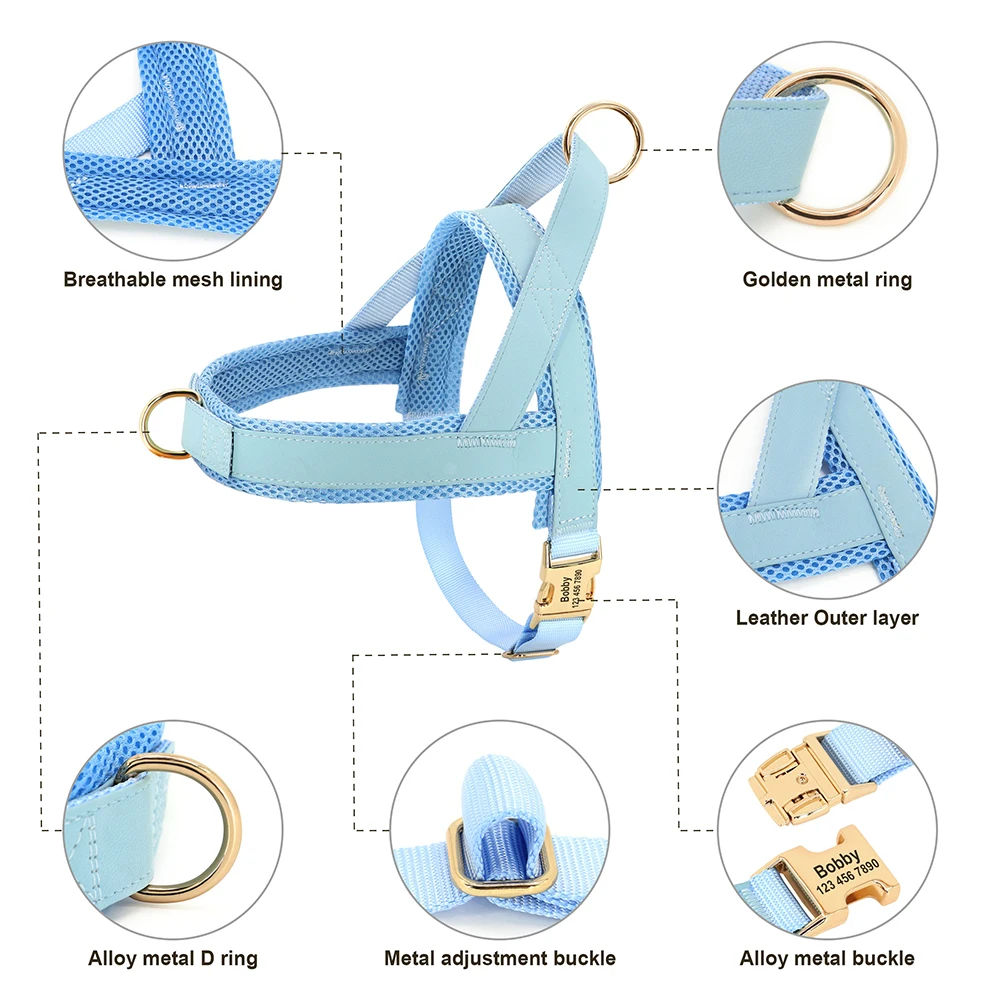 Name: Personalized Leather Dog Collar Harness Leash Set Pet Mesh Vest Harness Customized ID Pet Leads For Small Medium Large Dogs
