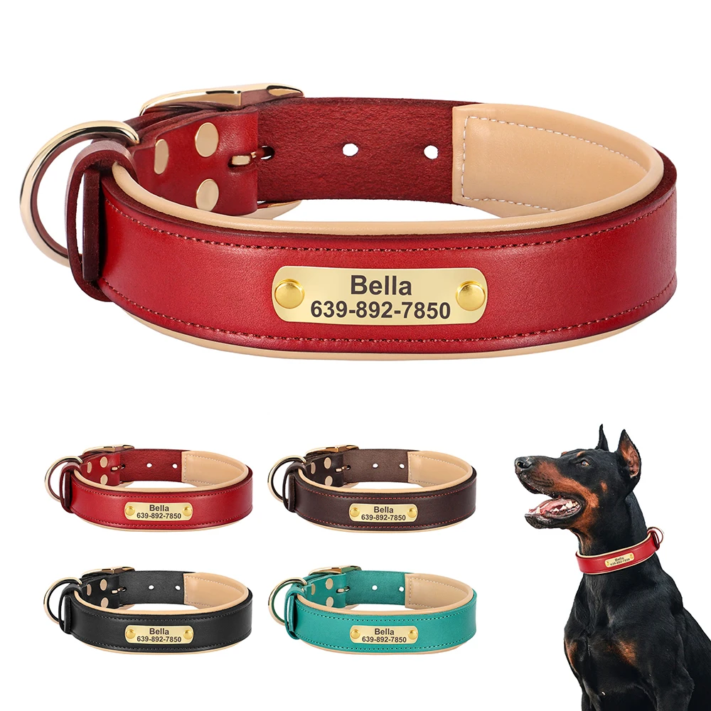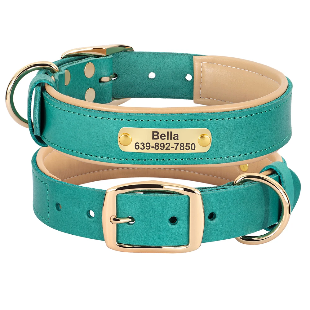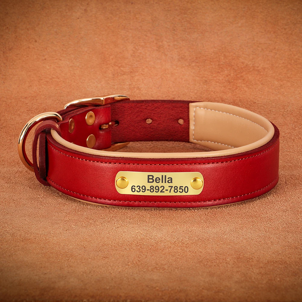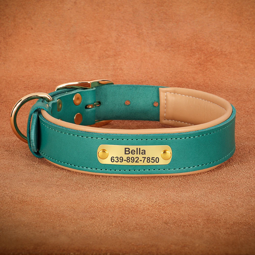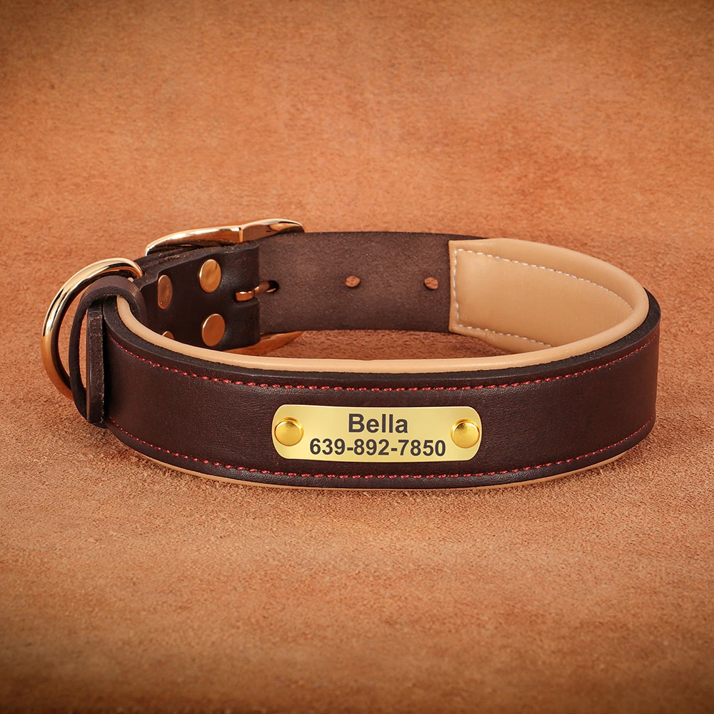 Collar de Cuero Personalizado para Perro, Collar de Identificación con Grabado Gratis, Ajustable, para Perros Pequeños y Grandes