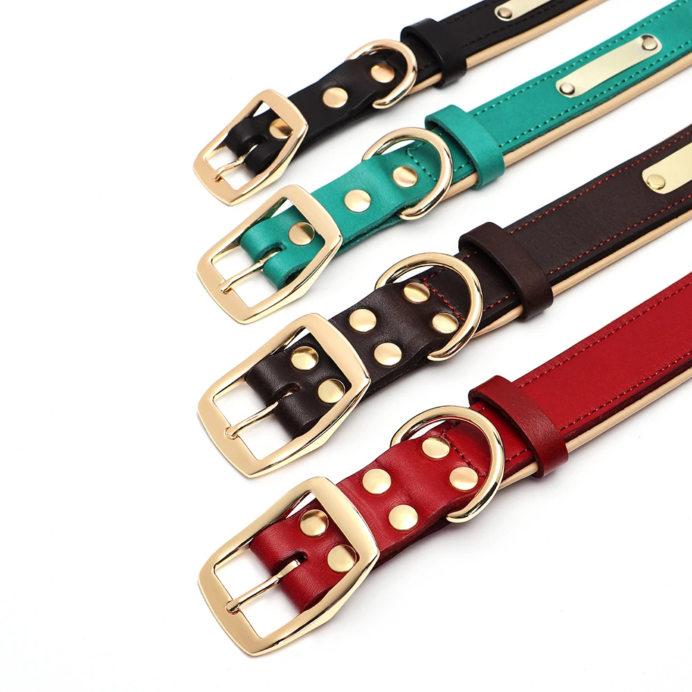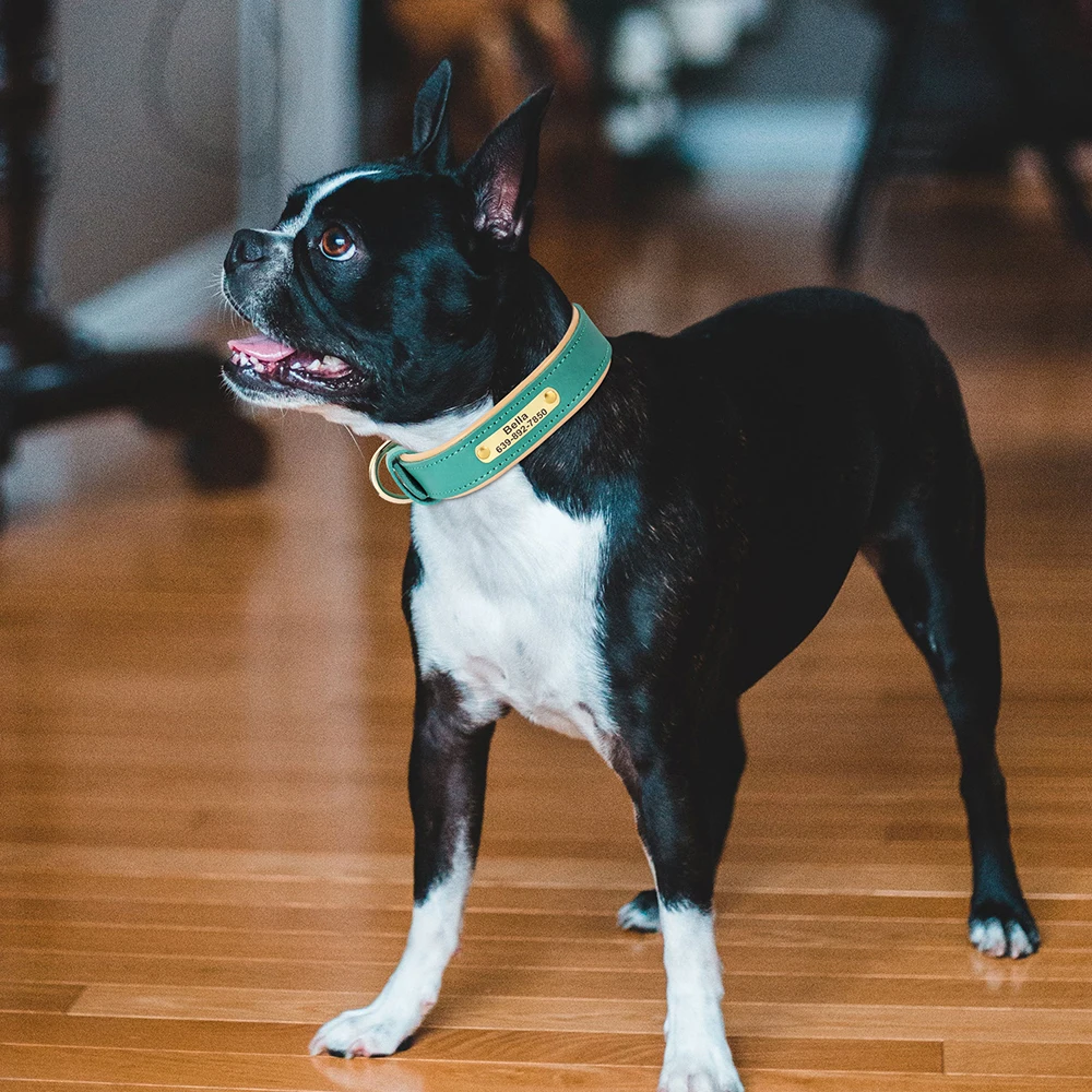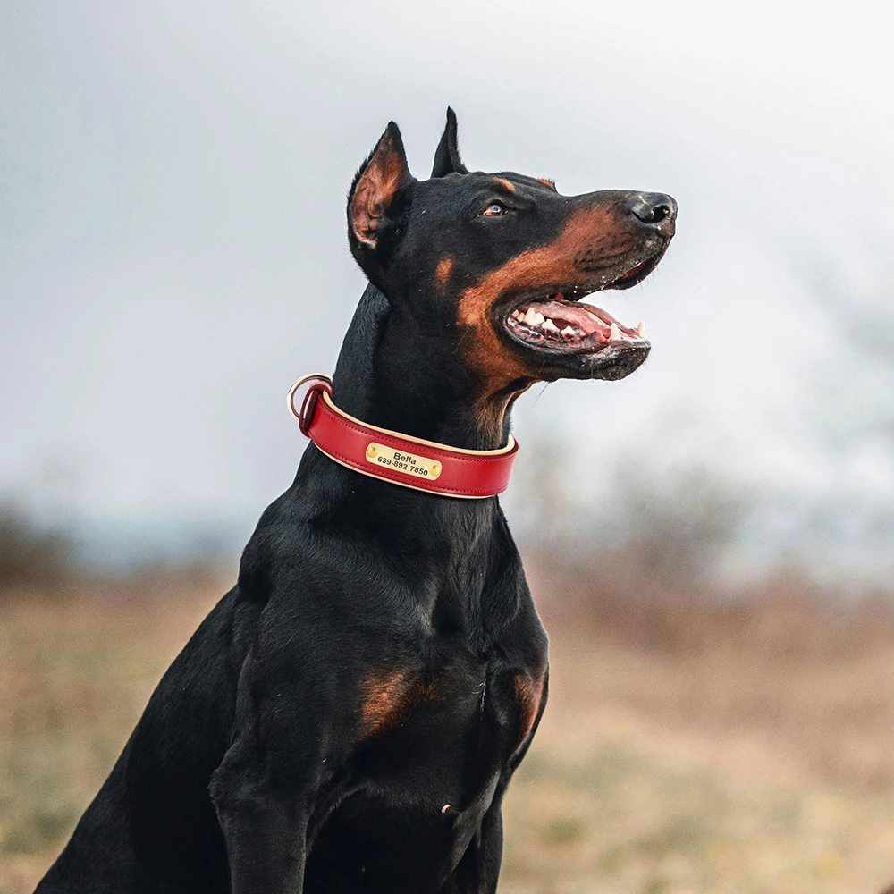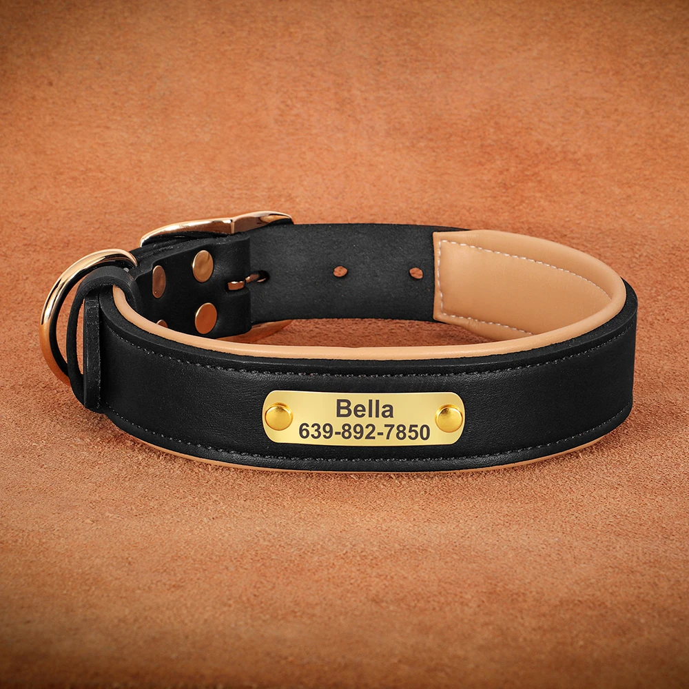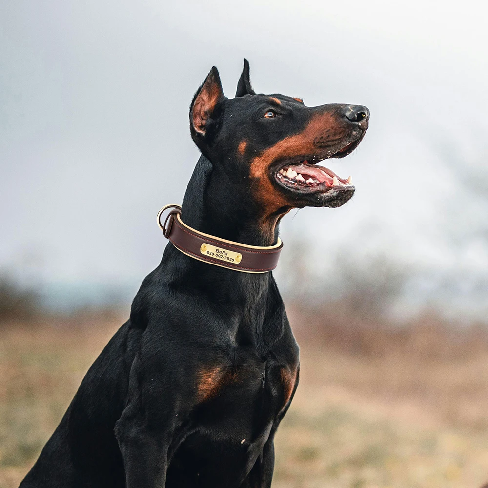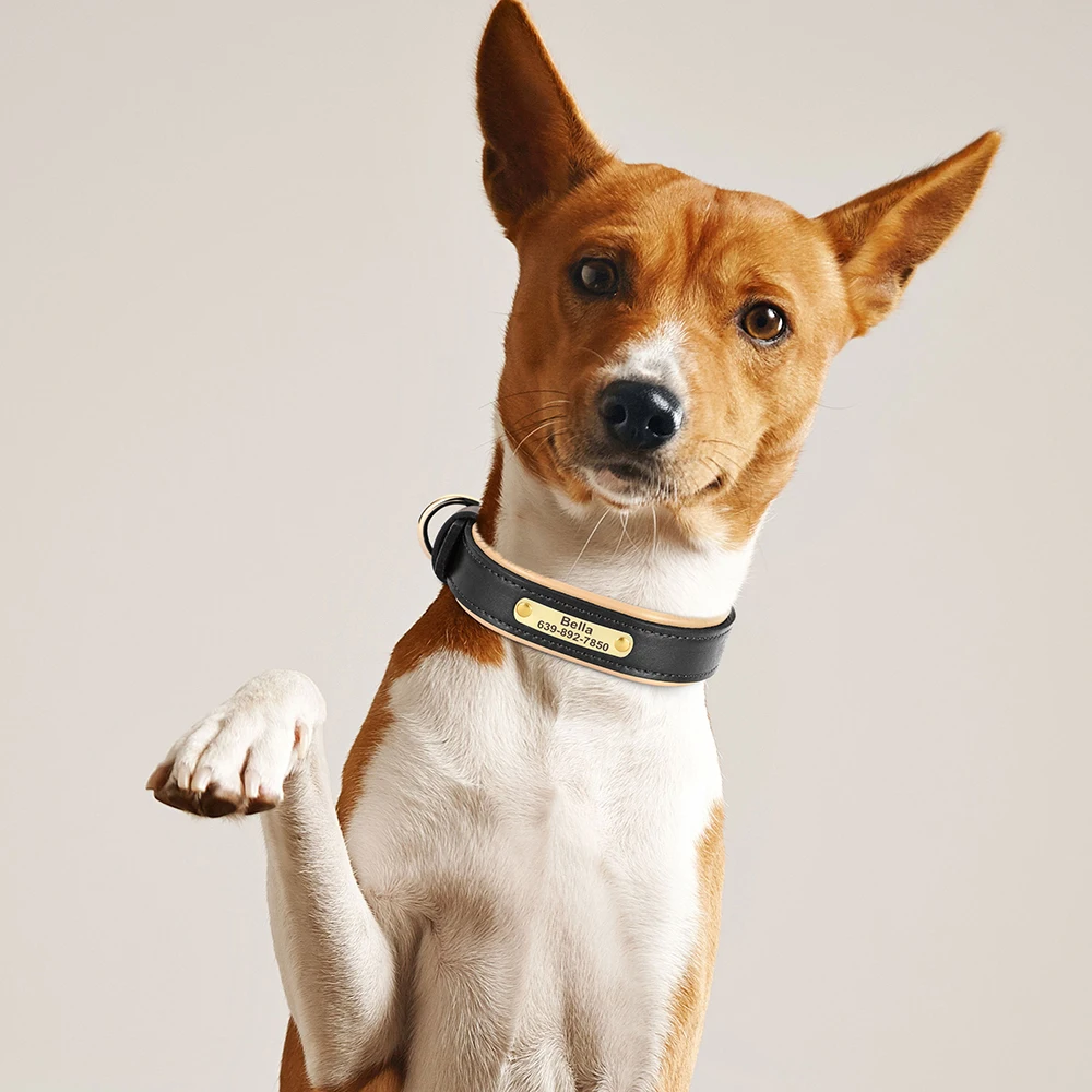 Collar de Cuero Personalizado para Perro, Collar de Identificación con Grabado Gratis, Ajustable, para Perros Pequeños y Grandes