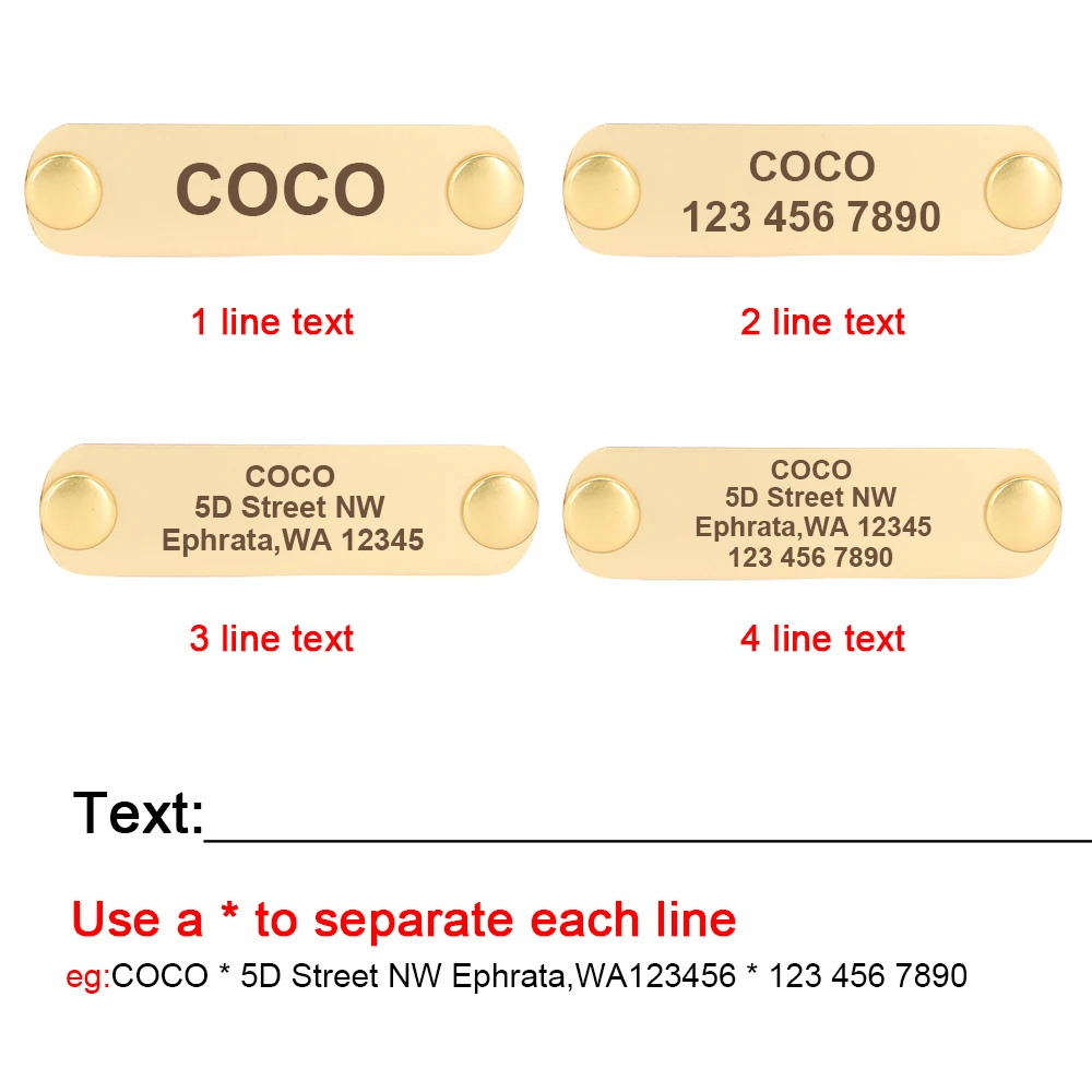 Placa de identificación de acero inoxidable donde Grabaremos el nombre y el número de teléfono de la mascota