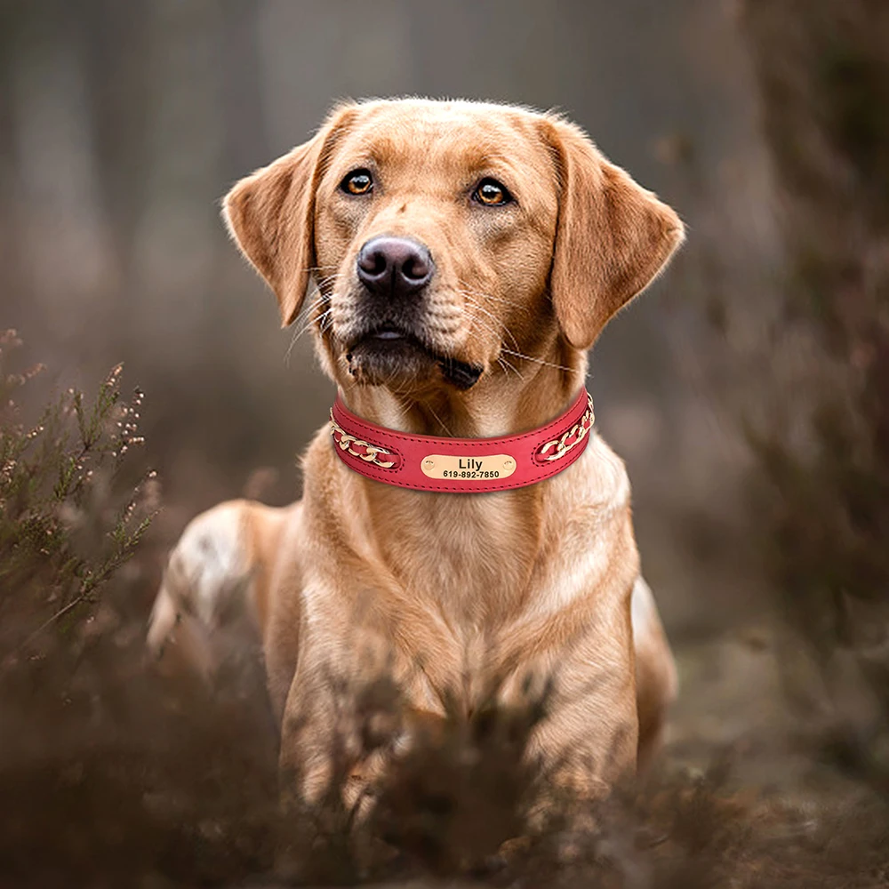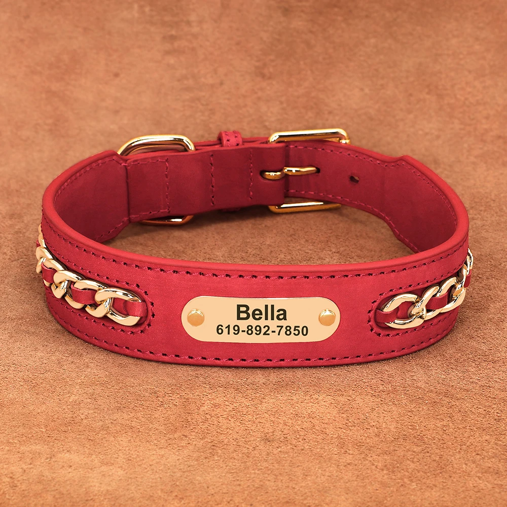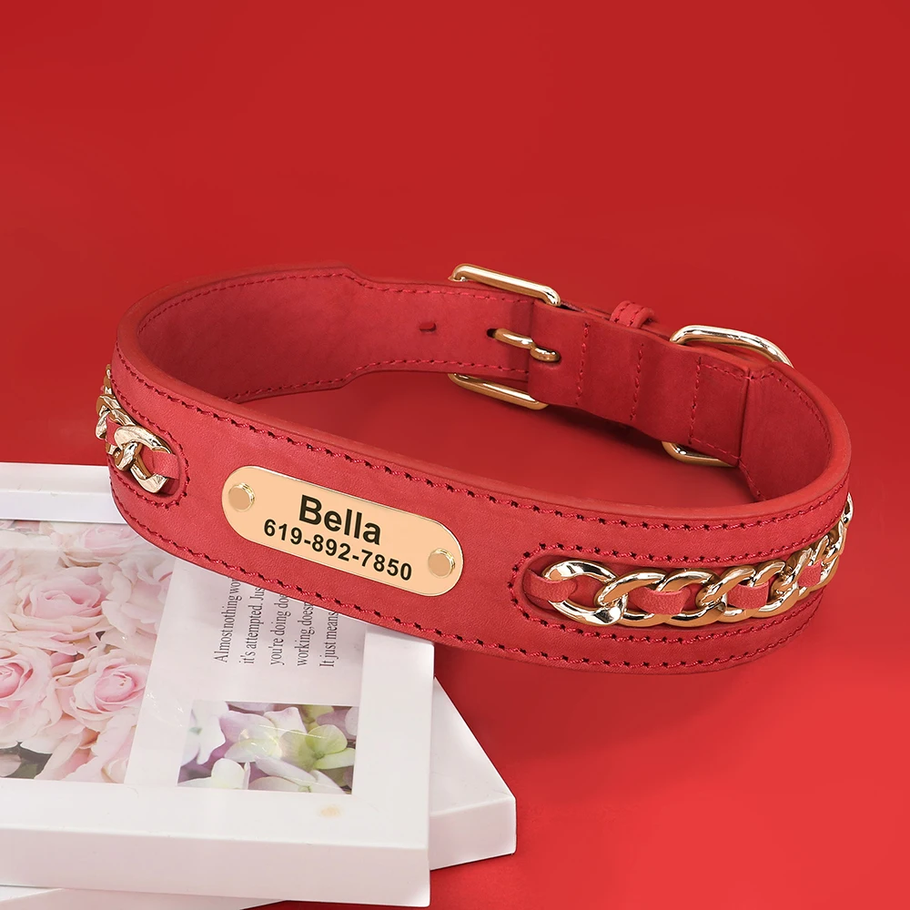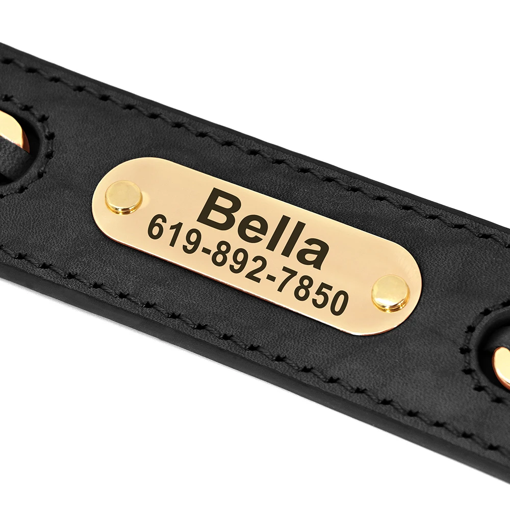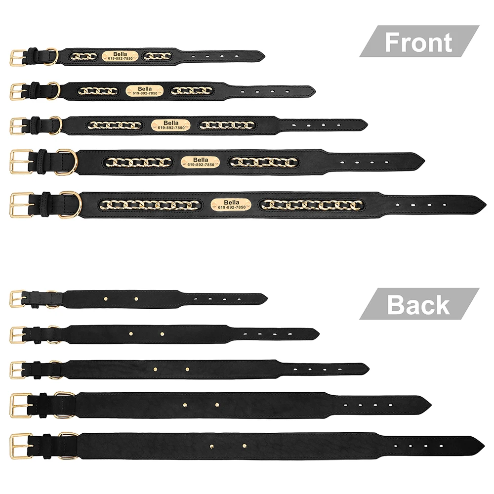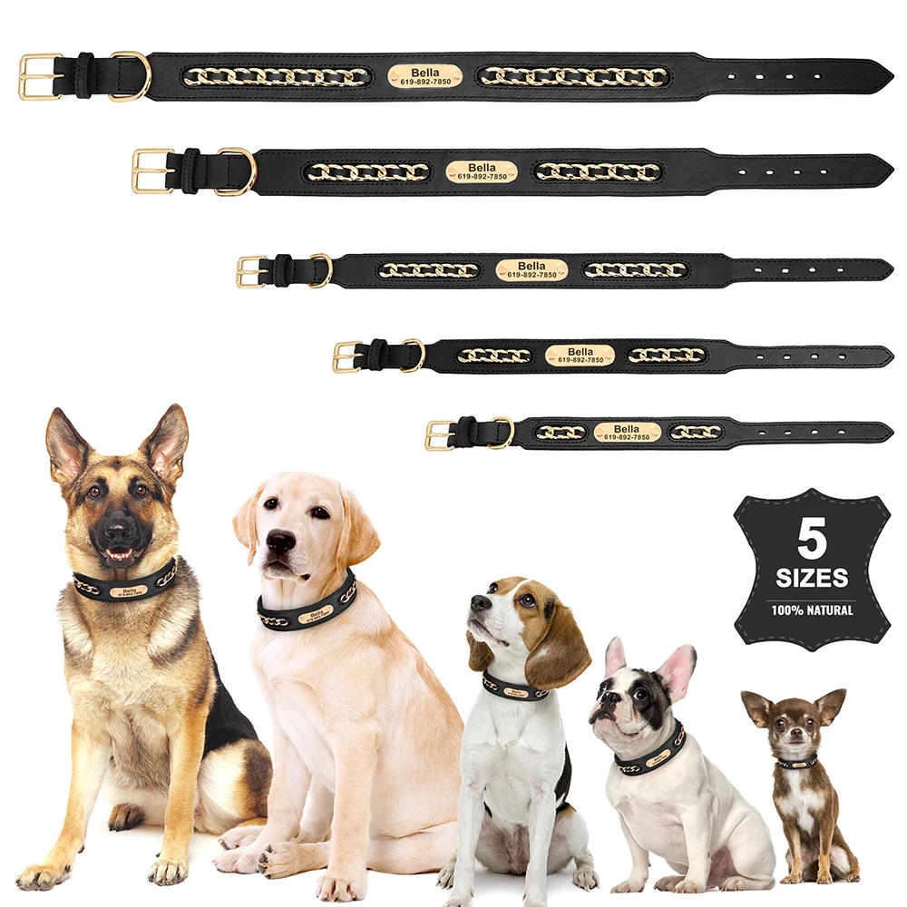 Name: Custom Genuine Leather Dog Collar for Big Dogs Soft Padded ID Collar Free Engraved Name For Small Medium Large Dogs Metal Design