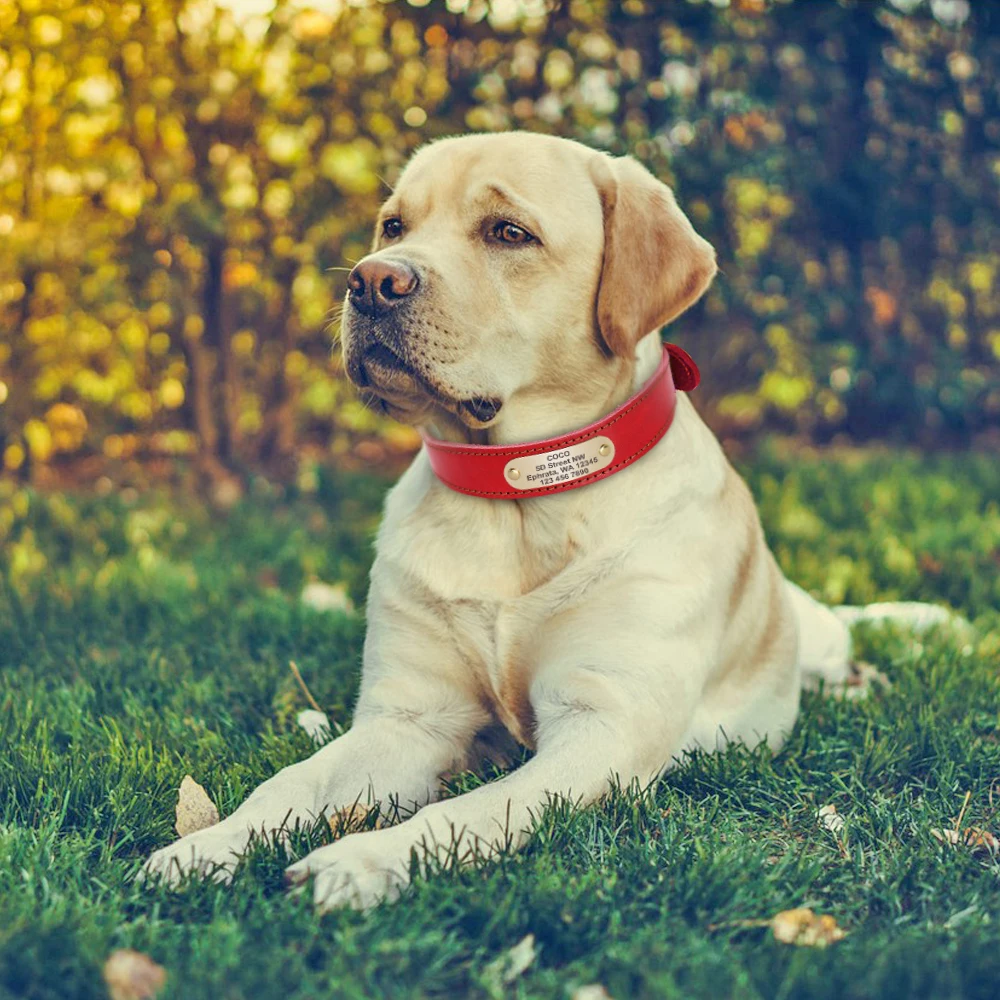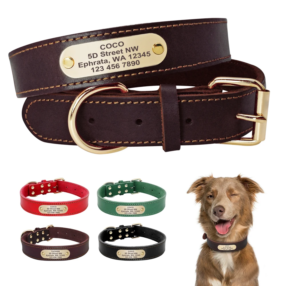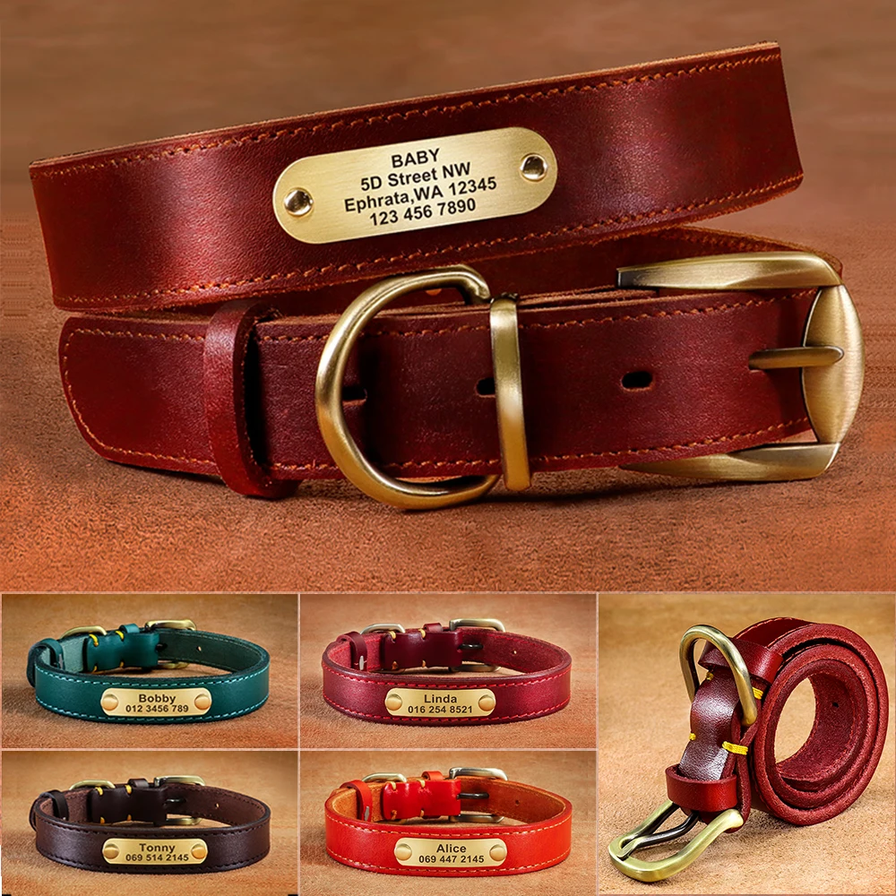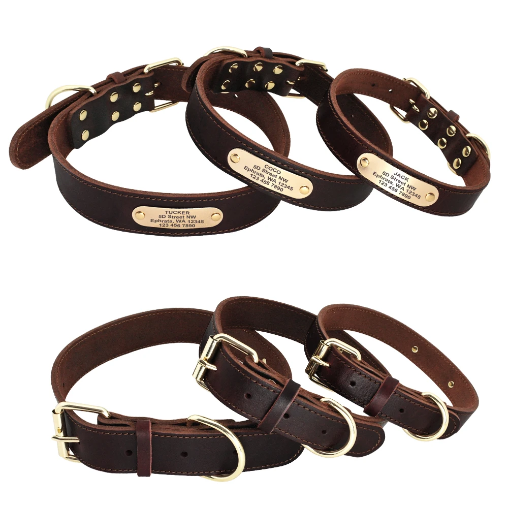 Type: Custom Dog Collar Leather Dog Tag Collars Engraved Pet ID Tag Collars For Small Medium Large Dogs French Bulldog Pug Pitbull