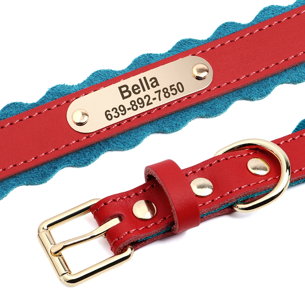 Tipo:Collar de perro personalizado de cuero para mascotas, collares de identificación de perro con relleno suave, collares ajustables para perros pequeños y medianos Bulldog
