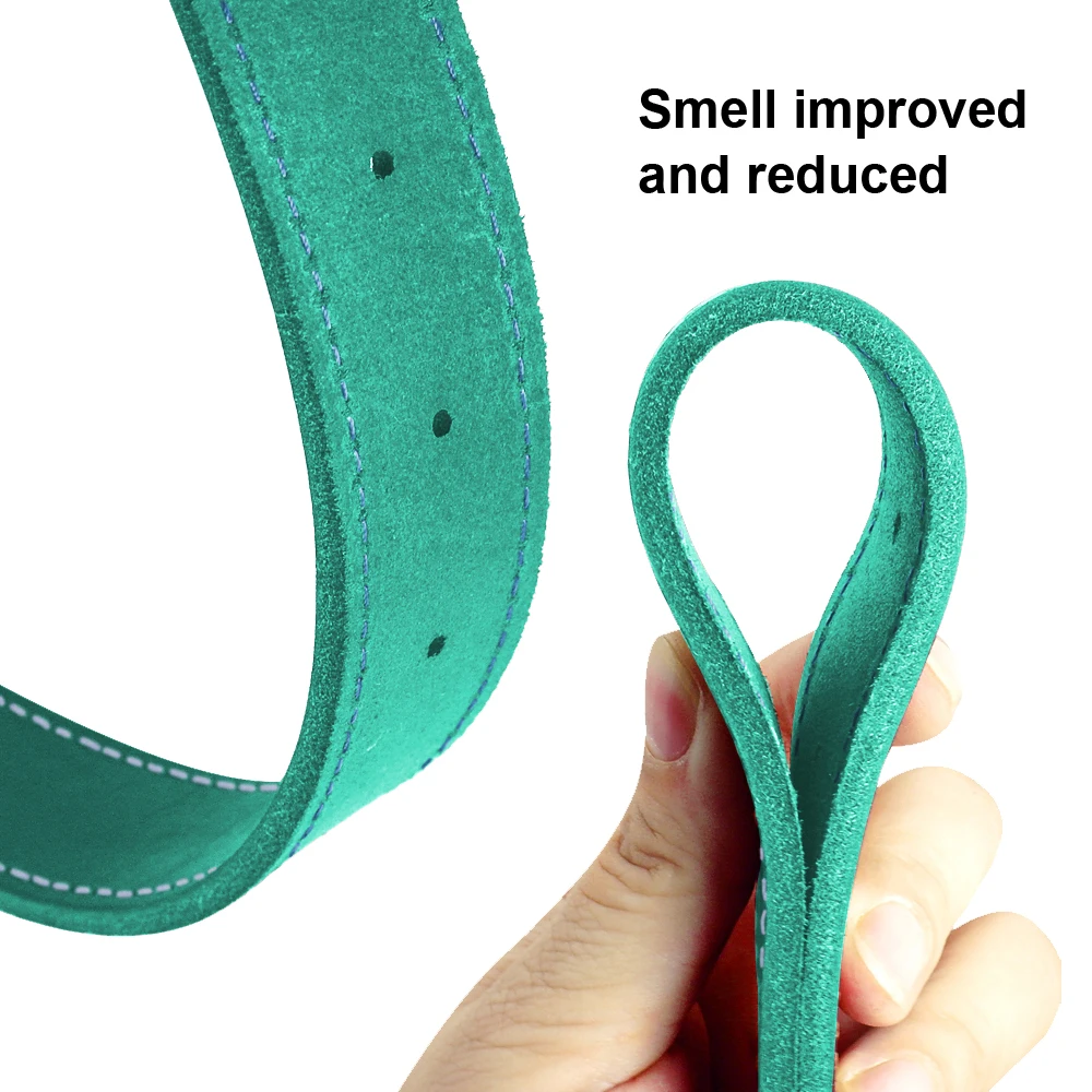 Muy buen collar para el precio. De algún tipo de polipiel, el tinte es bastante saturado (yo cogí el verde), parece resistente y el acabado en la chapa está bien. Era un poco grande para mí consentida pero con un agujerito de más lo hemos solucionado. Para mí, la compra merece la pena.
