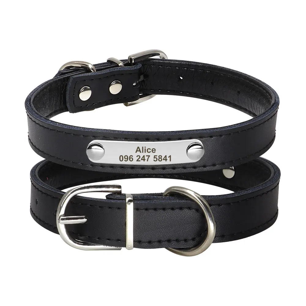 Collar de cuero personalizado para perro y gato, ajustable, grabado, gatito, cachorro, identificación, etiqueta de nombre, accesorios, collares para perros pequeños y medianos