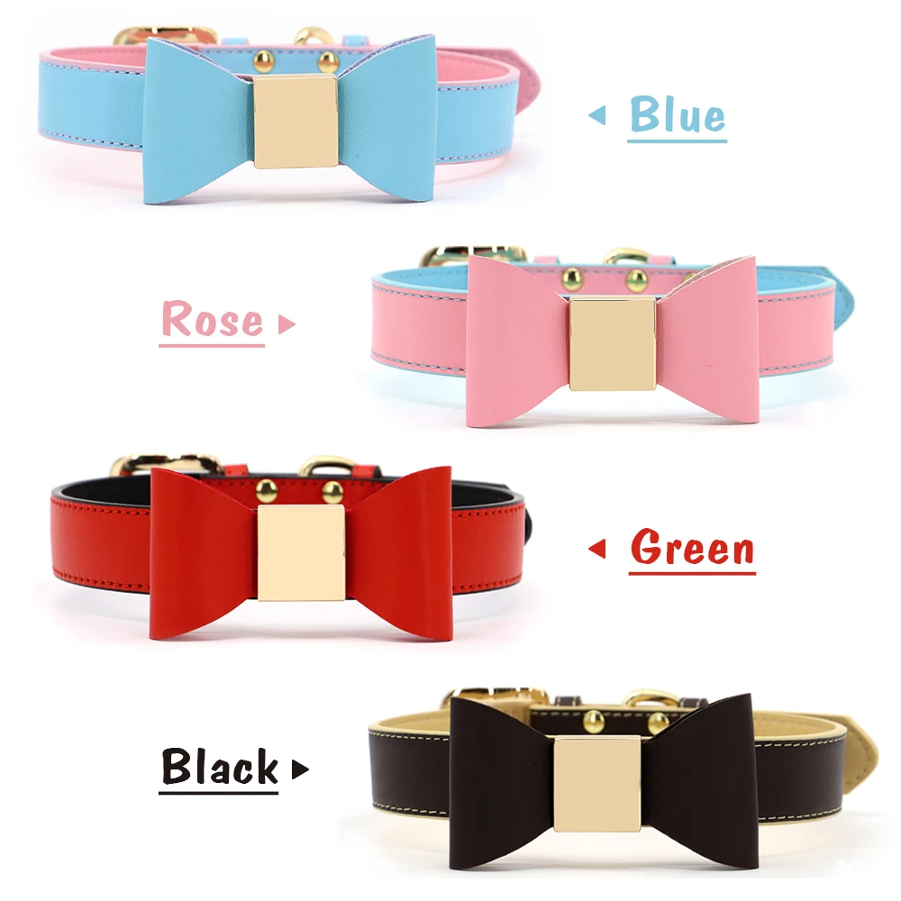 Collar de cuero PU para perro, collar de mascota con pajarita suave para hombre, collares bonitos con lazo, pequeños y medianos accesorios para perros, gatos