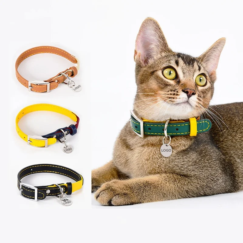 Collar de cuero suave para mascotas, Collar de gato separable, Collar de gato impermeable de cuero PU, Collar de gato prevención de asfixia