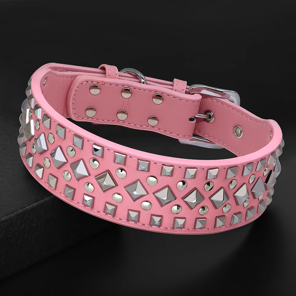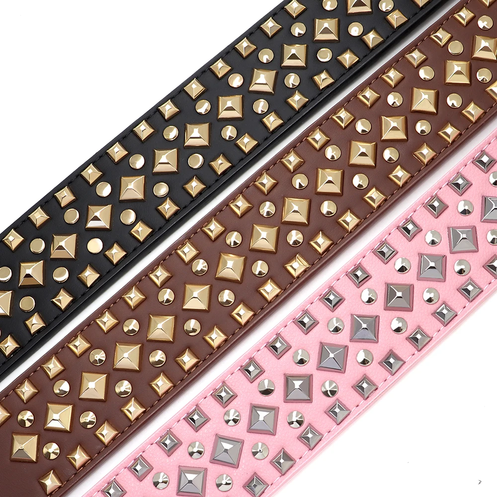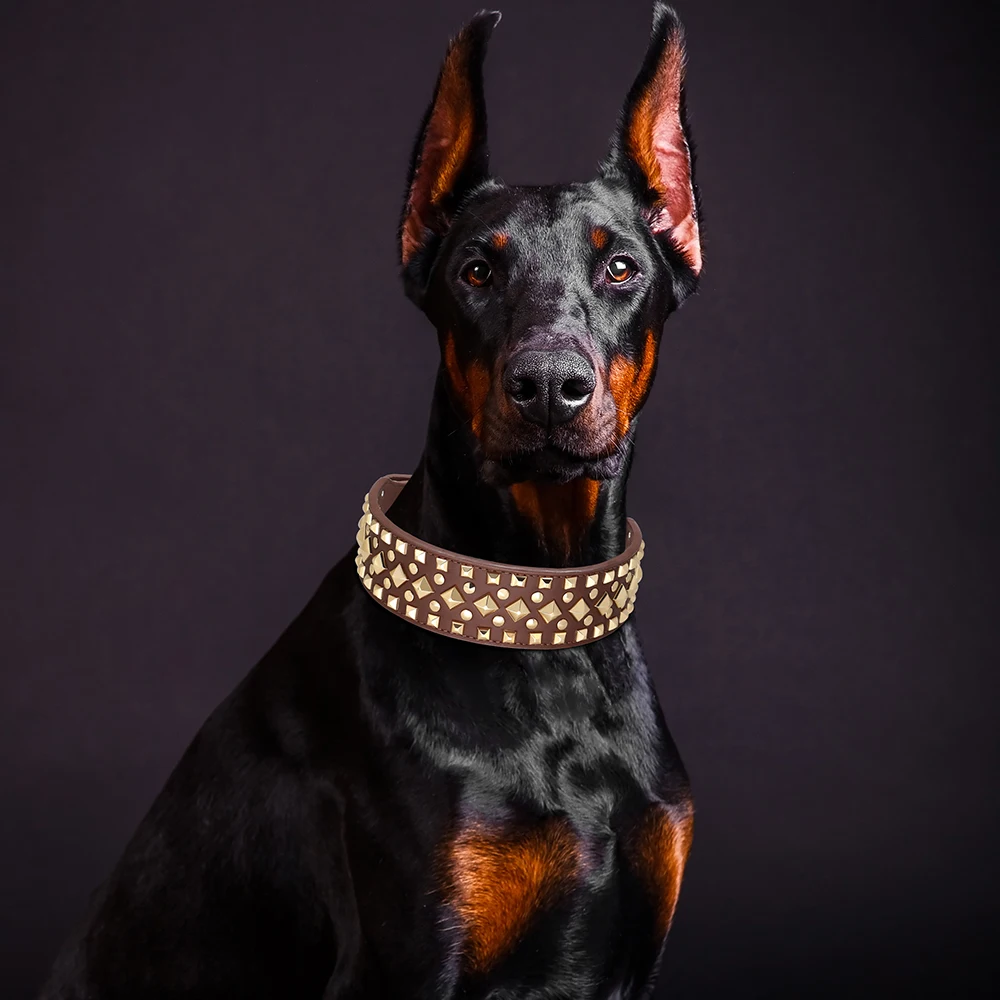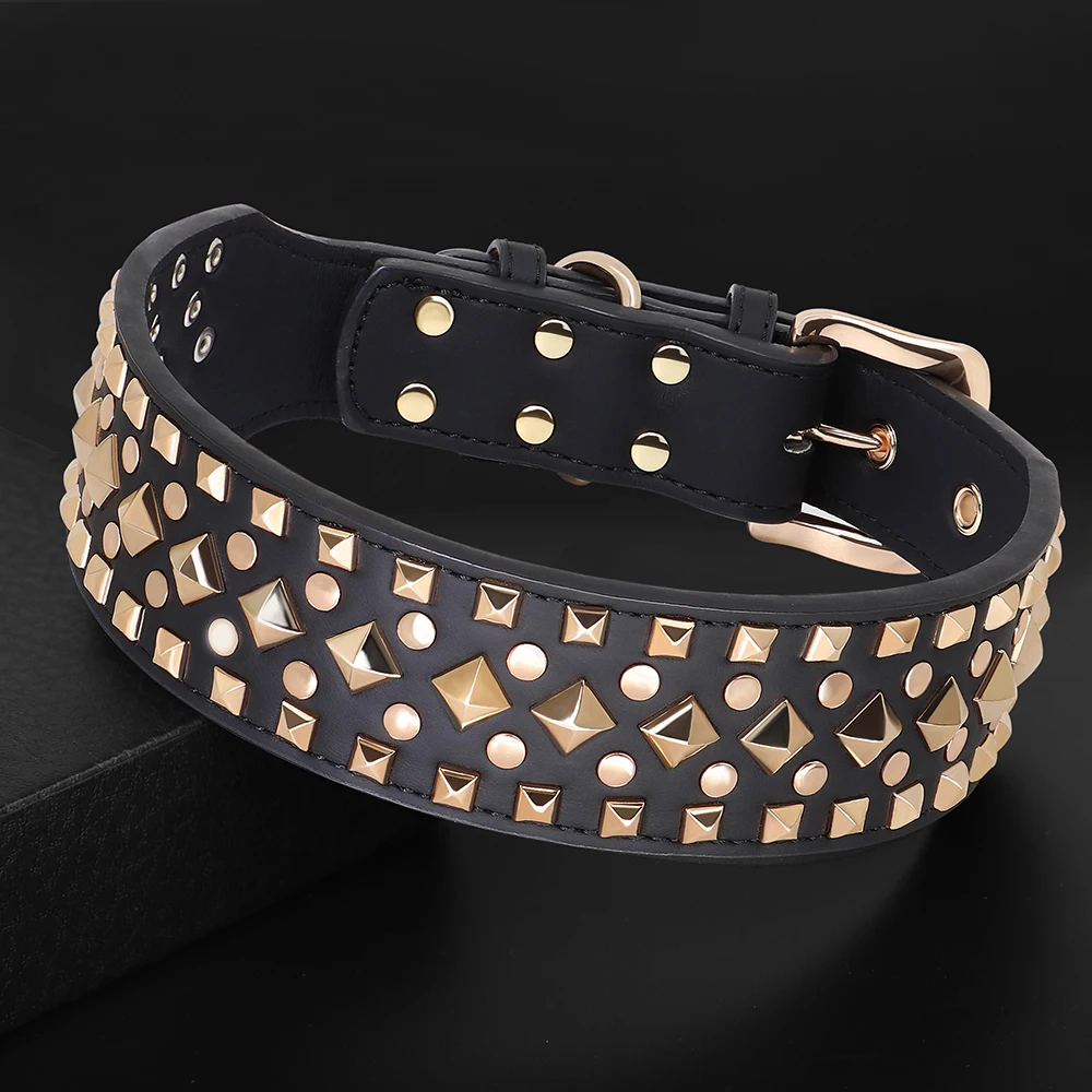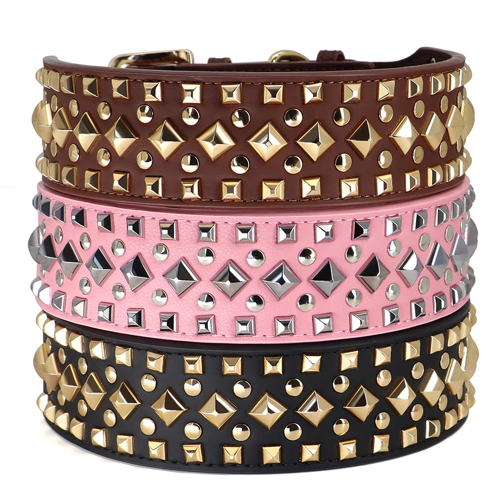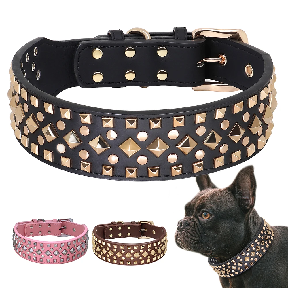 Collar de cuero con tachuelas para perro, lujoso Collar ajustable para perros grandes, medianos y grandes, Pitbull