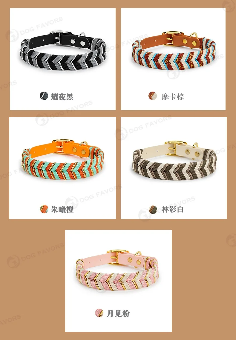 Collar de cuero tejido a mano para mascotas, conjunto de correa, Collar de perro tejido a rayas multicolor, collares trenzados suaves y ajustables para perros