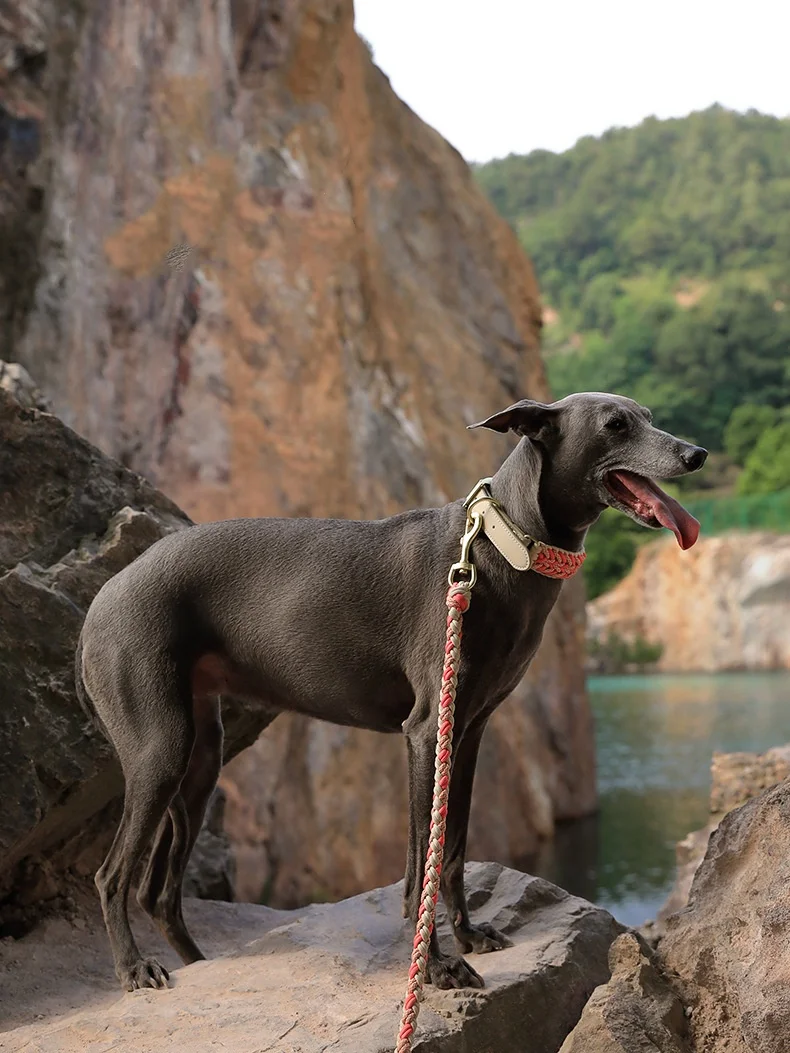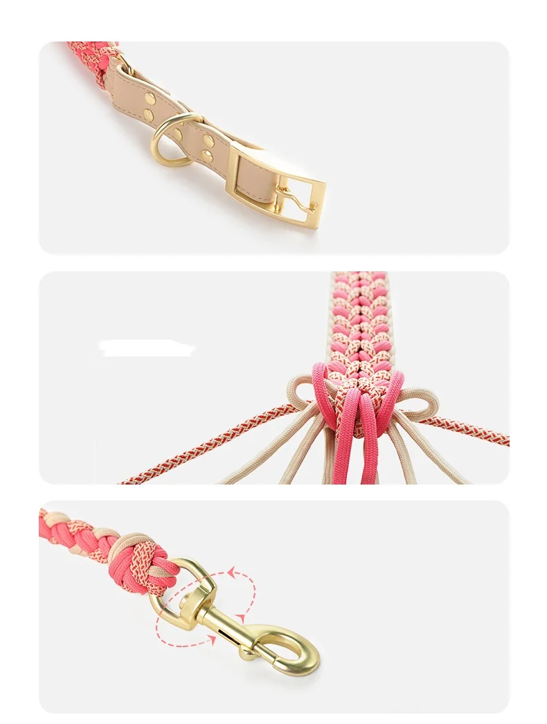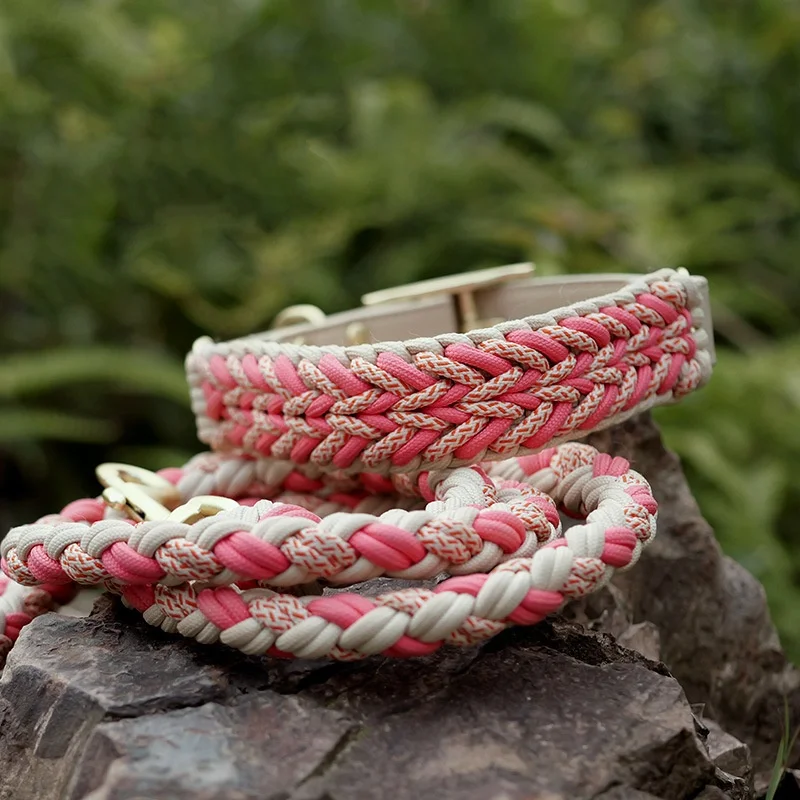 Collar de cuero tejido a mano para mascotas, conjunto de correa, Collar de perro a rayas multicolor, Collar de perro trenzado suave y ajustable con hebilla de Metal