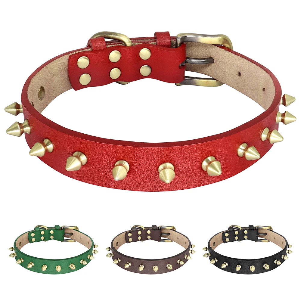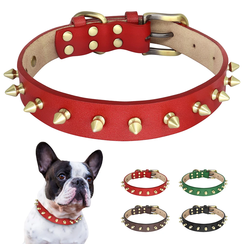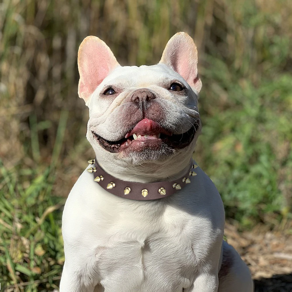 Collar de cuero de vaca con tachuelas y remaches para perro, Collar de 1 fila para cachorro, gato, perros pequeños y medianos, Chihuahua, Yorkies, 10-18 ", rojo y marrón