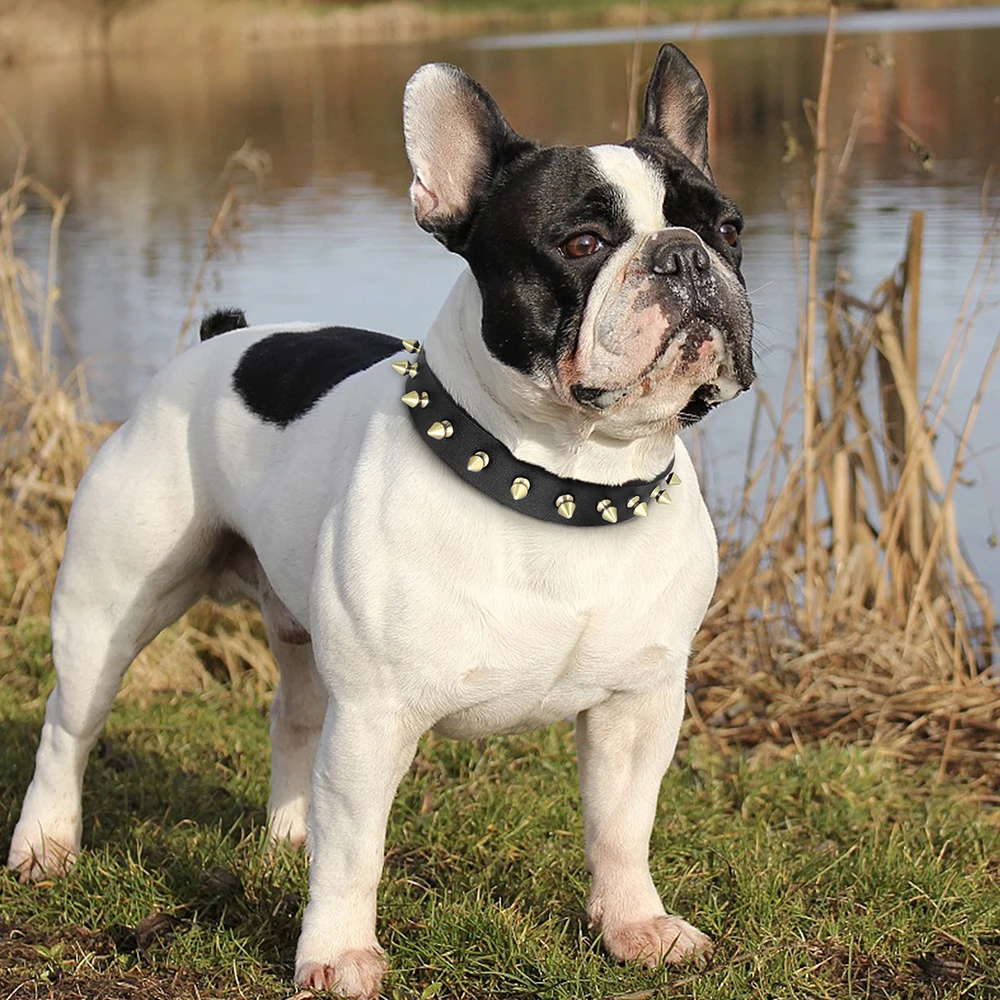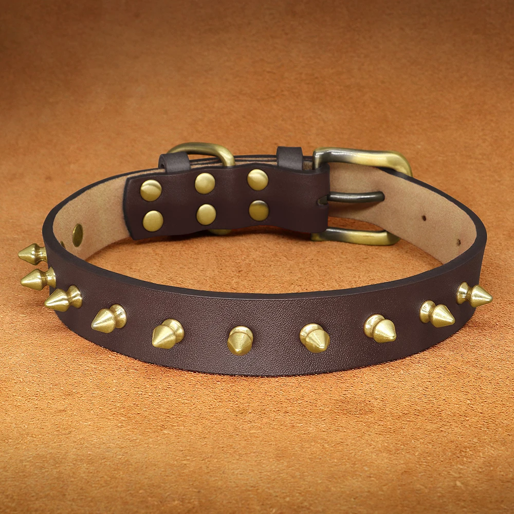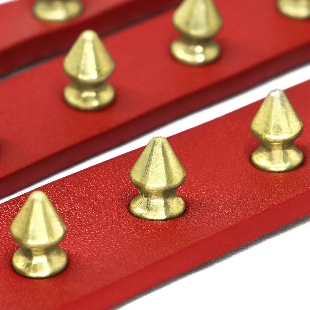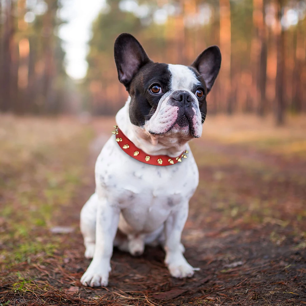 Collar de cuero de vaca con tachuelas y remaches para perro, Collar de 1 fila para cachorro, gato, perros pequeños y medianos, Chihuahua, Yorkies, 10-18 ", rojo y marrón