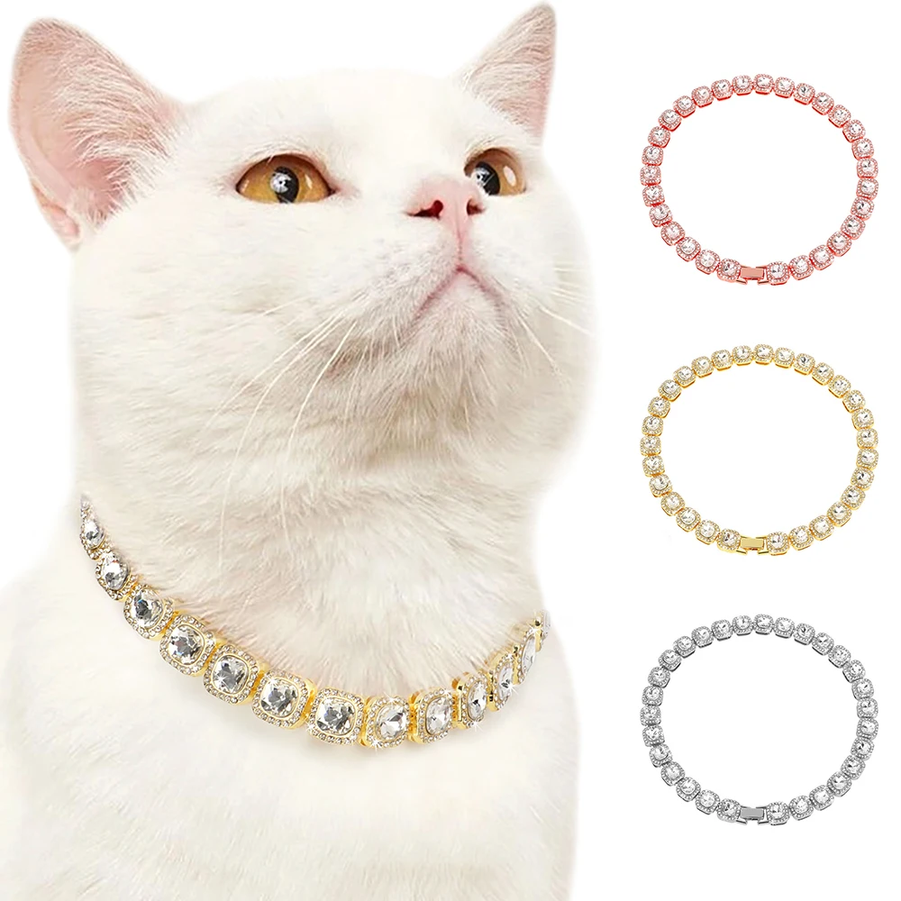 Collar de gato con diamantes de imitación ostentosos, Collar ajustable para perros y gatos ostentosos, collares para perros pequeños de estrangulación, gatos, conejo, accesorio para mascotasMaterial: Metal, diamantes de imitación ostentosos