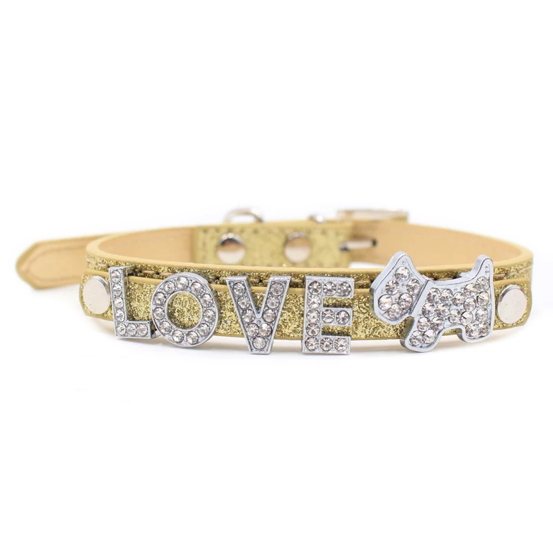 Collares para perros y mascotas, accesorios para perros y gatos, 10MM, letras y dijes de diamantes de imitación, collar para cachorros y gatos, Collar personalizado con nombre DIY para perros