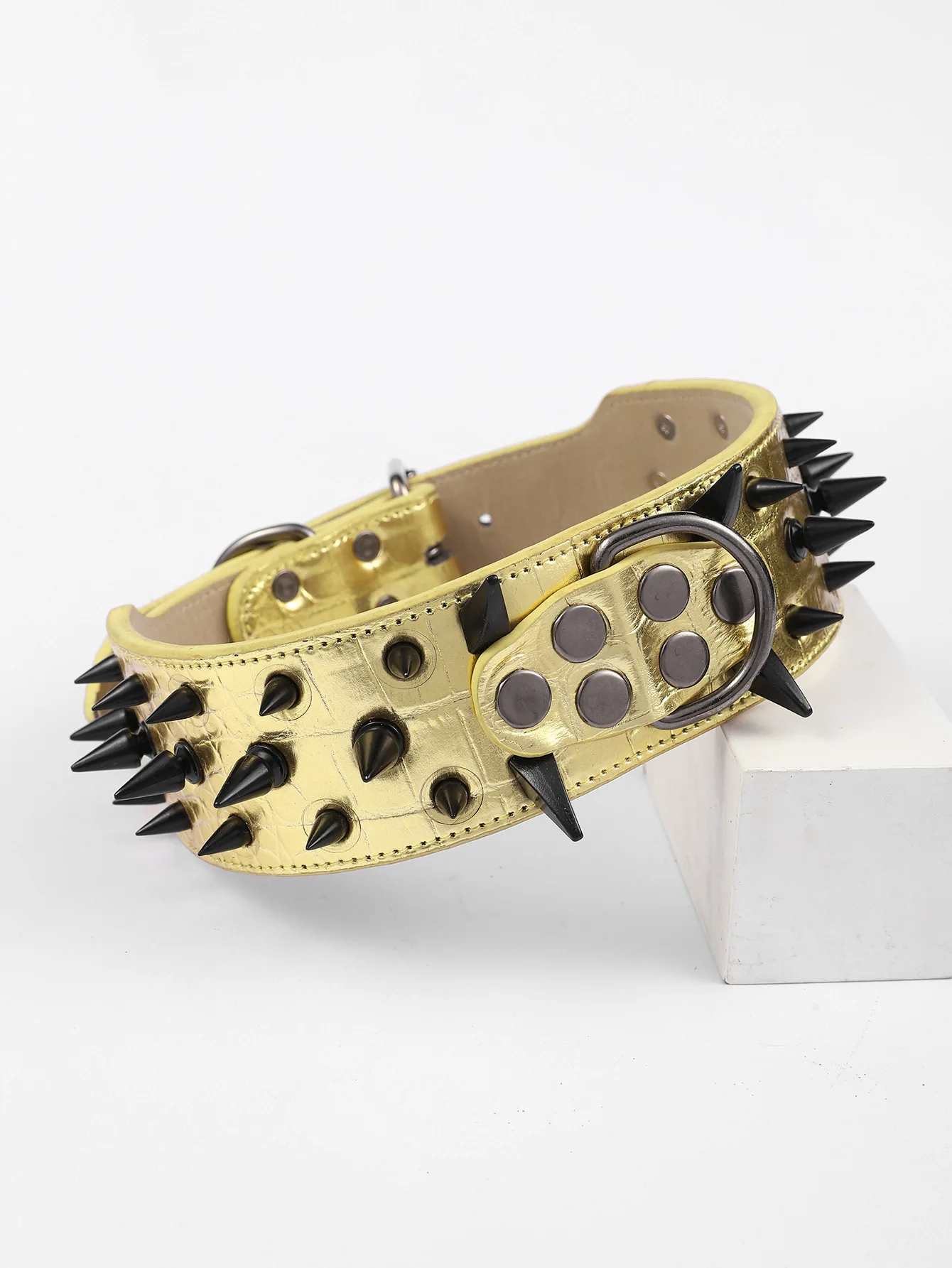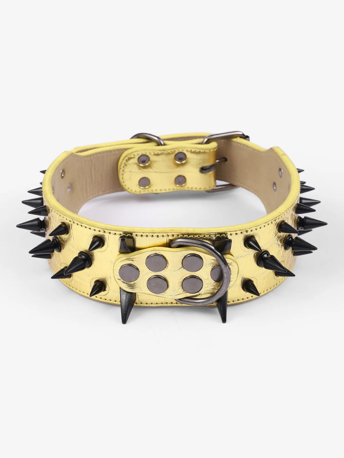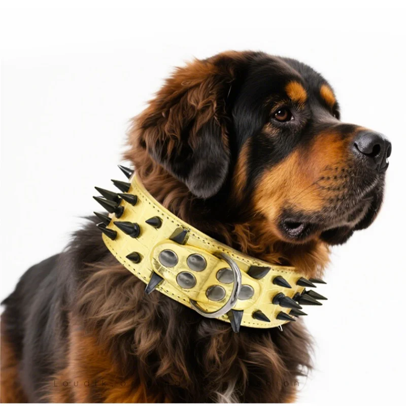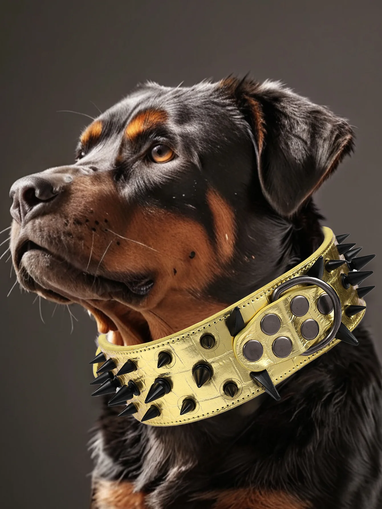 Collar duradero con tachuelas para perros grandes y medianos, Collar ajustable con puntas anchas, remache de seta, Collar de cuero PU para perros