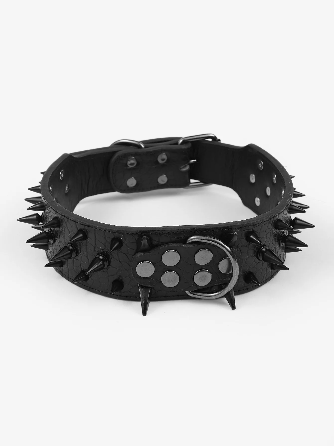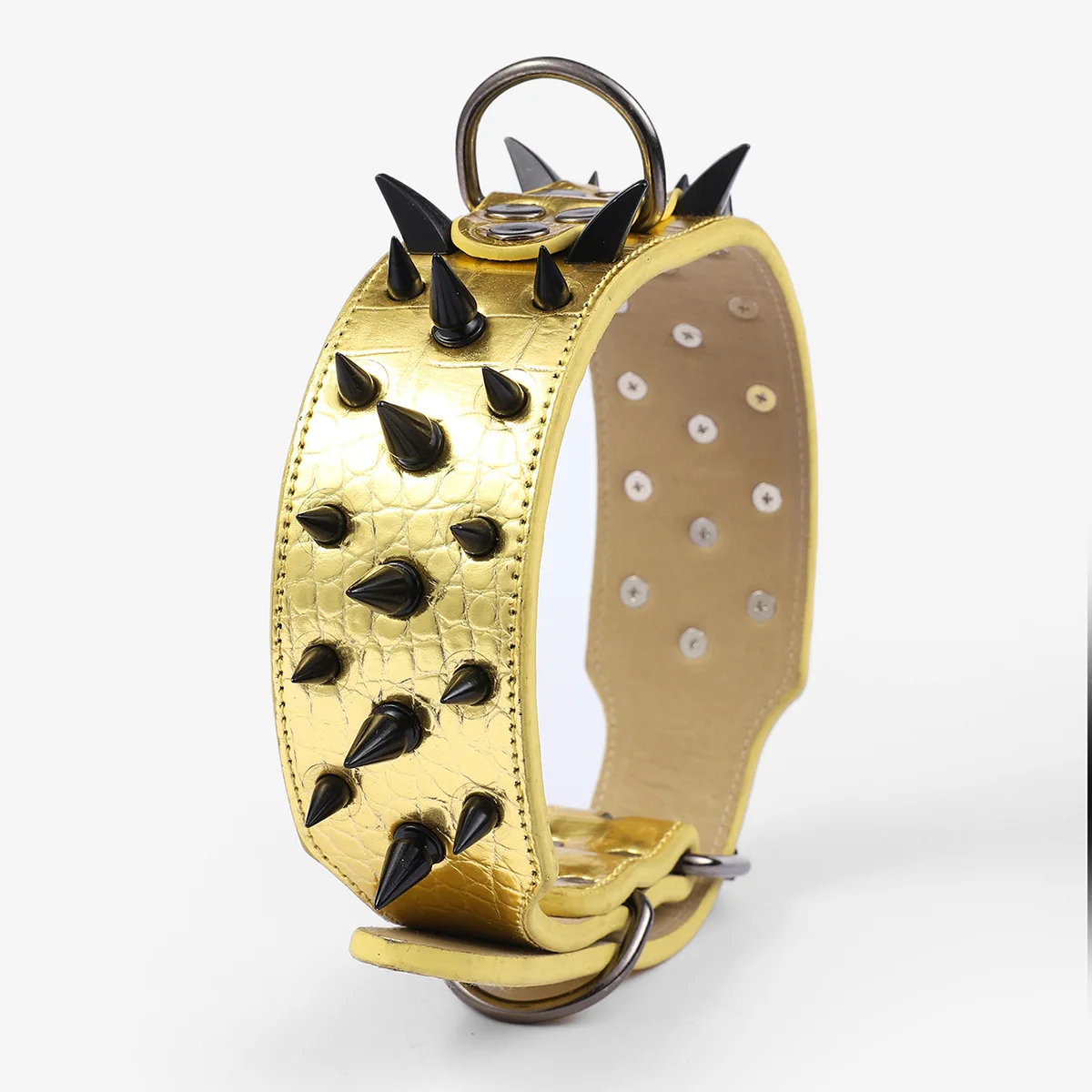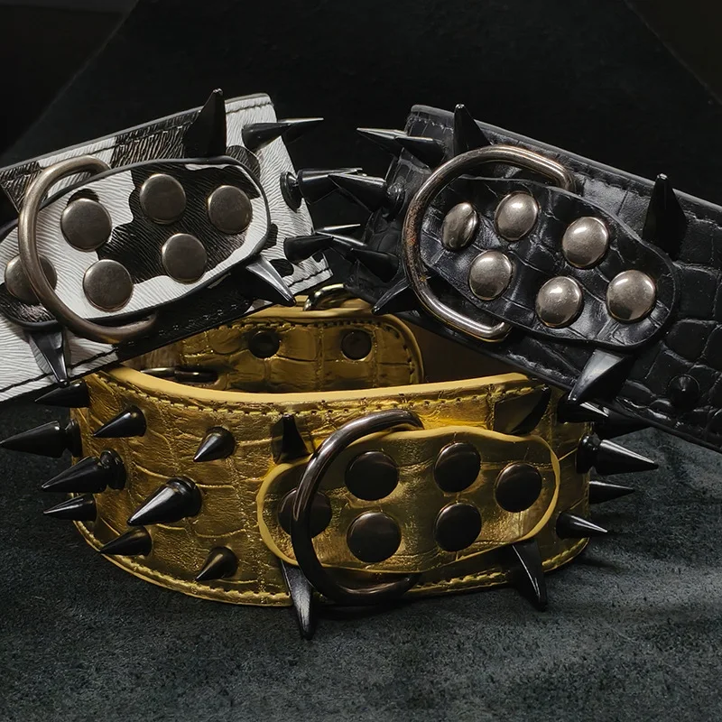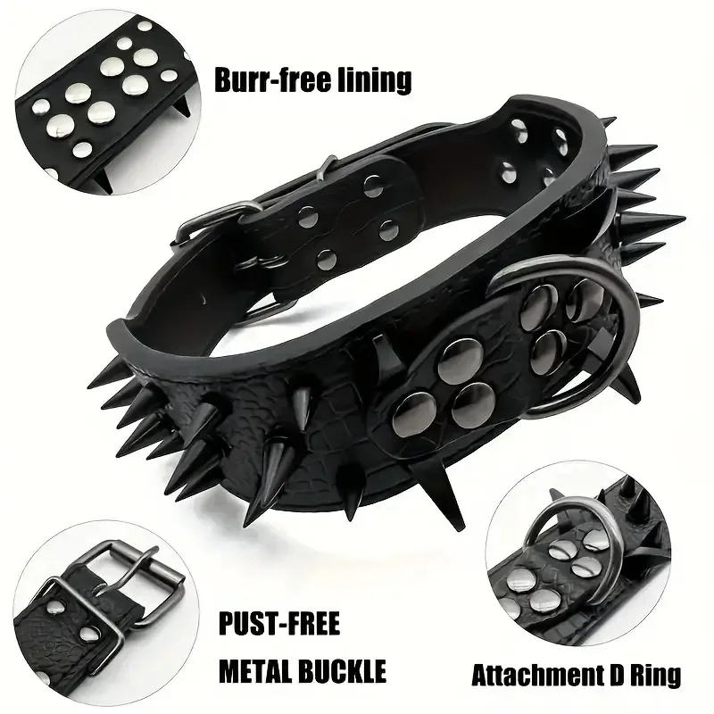 Collar duradero con tachuelas para perros grandes y medianos, Collar ajustable con puntas anchas, remache de seta, Collar de cuero PU para perros