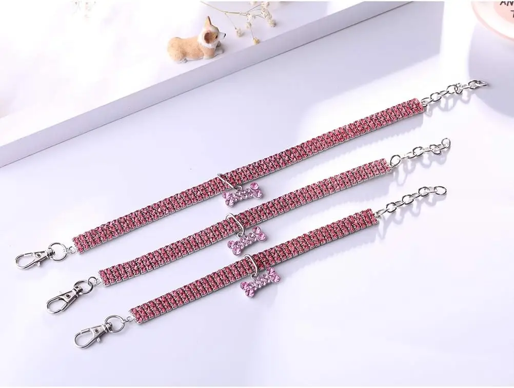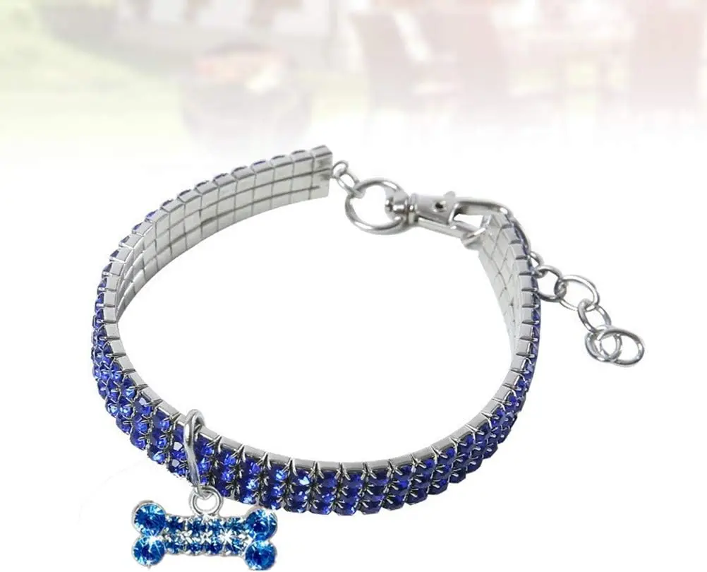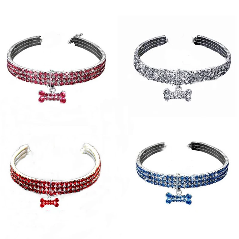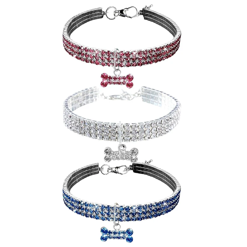 Collar elástico de 3 filas para cachorros, Collar de diamantes de imitación con colgante de hueso, accesorios ostentosos de lujo para mascotas, joyería de cristal para perros pequeños