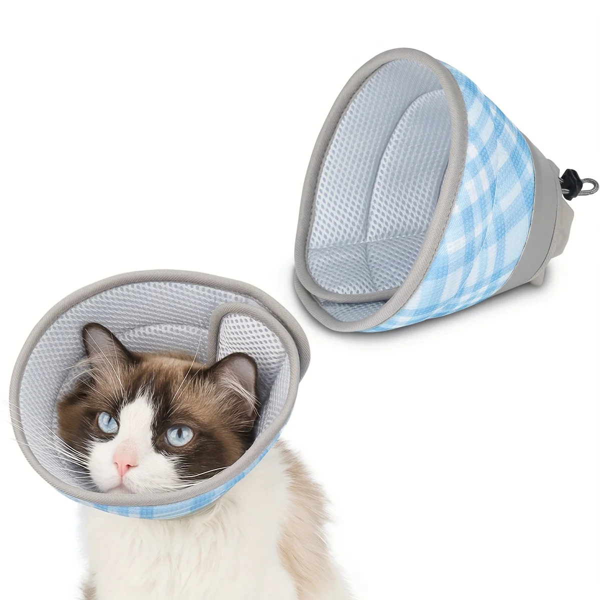 Collar Elizabeth para mascotas, cubierta protectora a cuadros, escudo protector para gatos, Collar antilamer, escudo protector para Neuteri