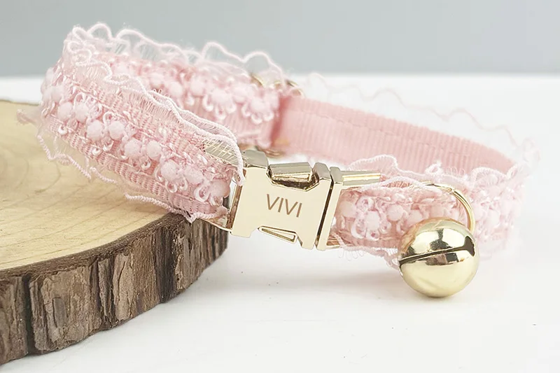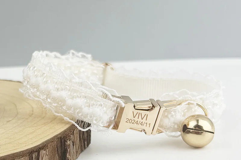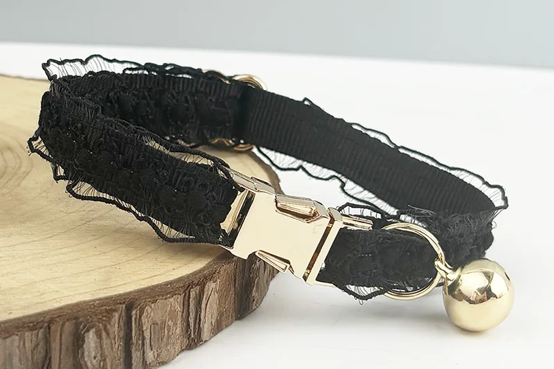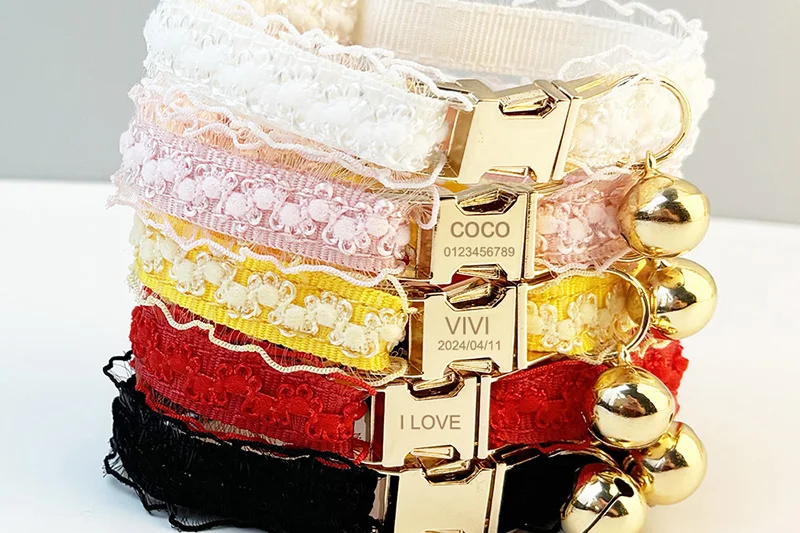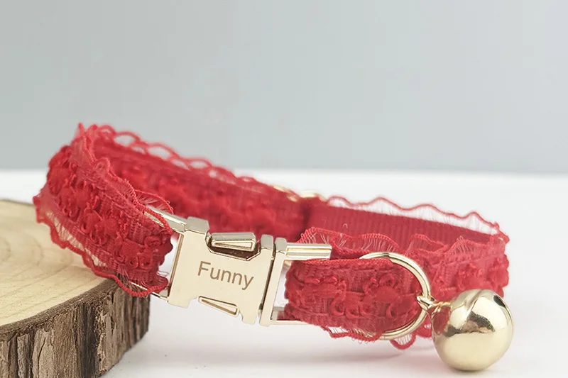 Collar de encaje para gatos Collar ajustable personalizado para mascotas Nombre personalizado Suave con campana Collar para mascotas para gatos y perros pequeños