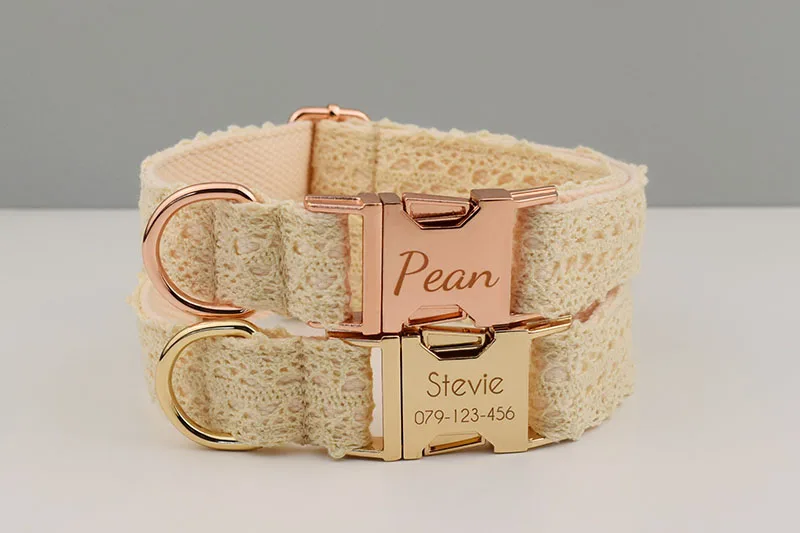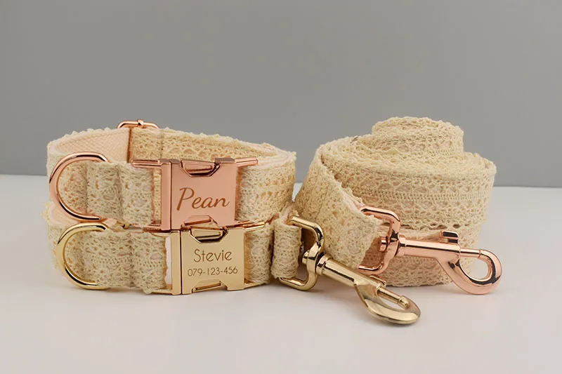 Collar de perro con grabado gratis, juego de correa para collar para mascota mediana y grande, accesorios de boda para perros, collares para perros femeninos