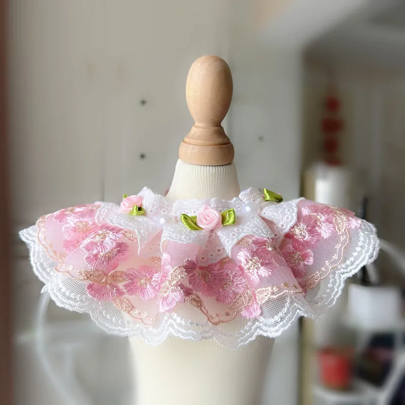 Collar de perro gato de encaje para niñas, decoración de cuello de novia de boda de lujo, rosa, Azul, Morado, rojo, Floral, Baberos para mascotas, collar, bufanda para perro pequeño