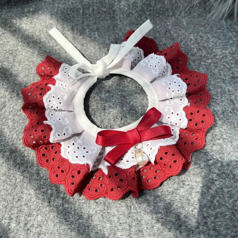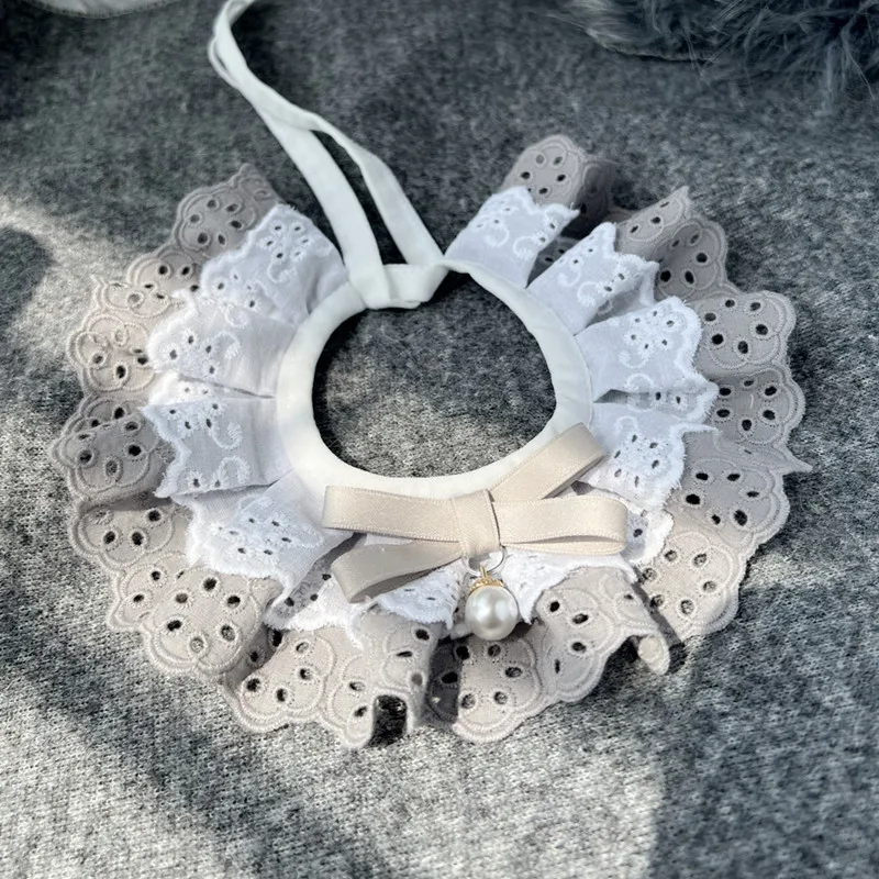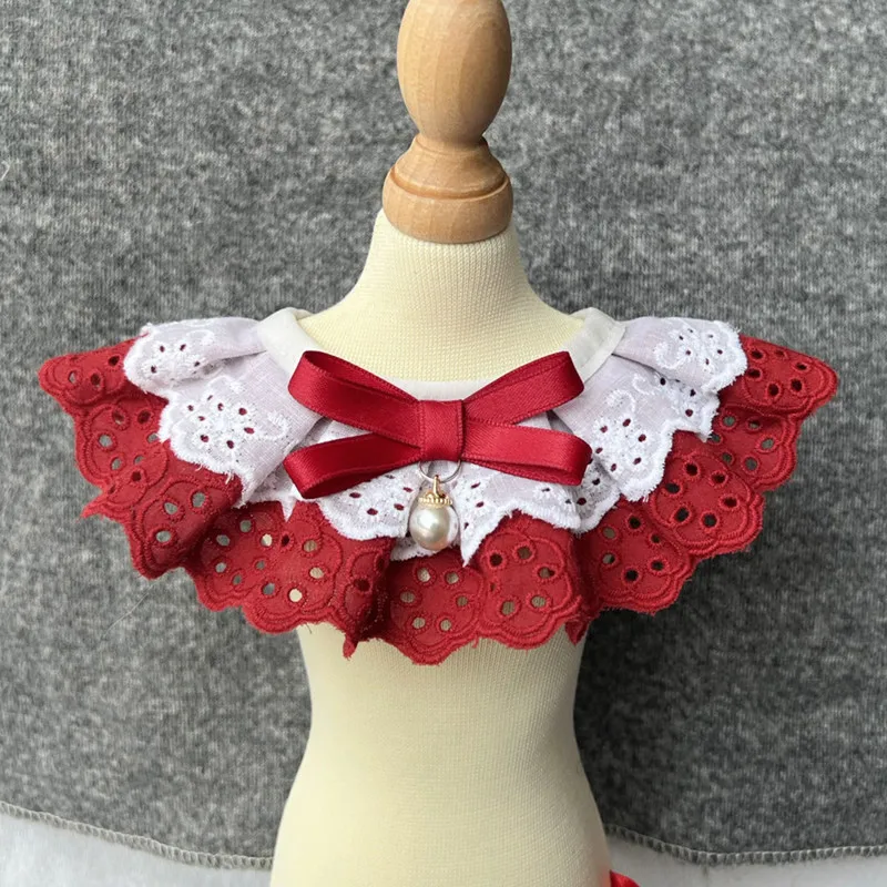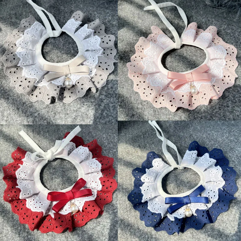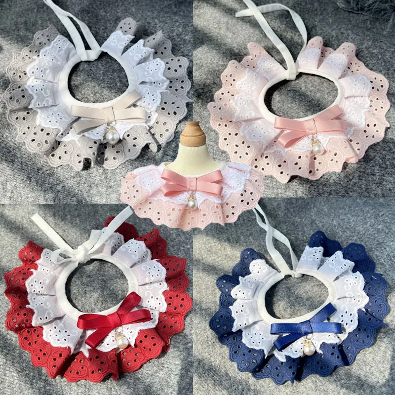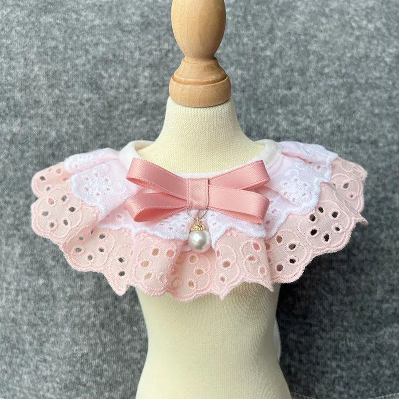 Baberos de encaje para Collar de perro y gato, collar de cuerda ajustable, toalla de Saliva para perros pequeños y medianos, lazo Yorkie con colgante de perlas, accesorios