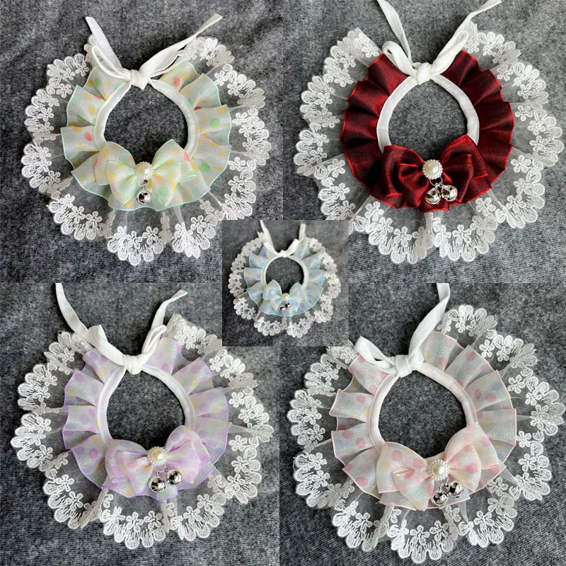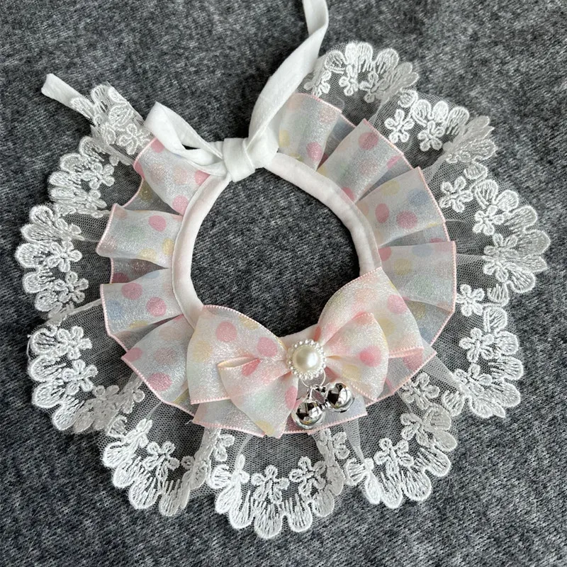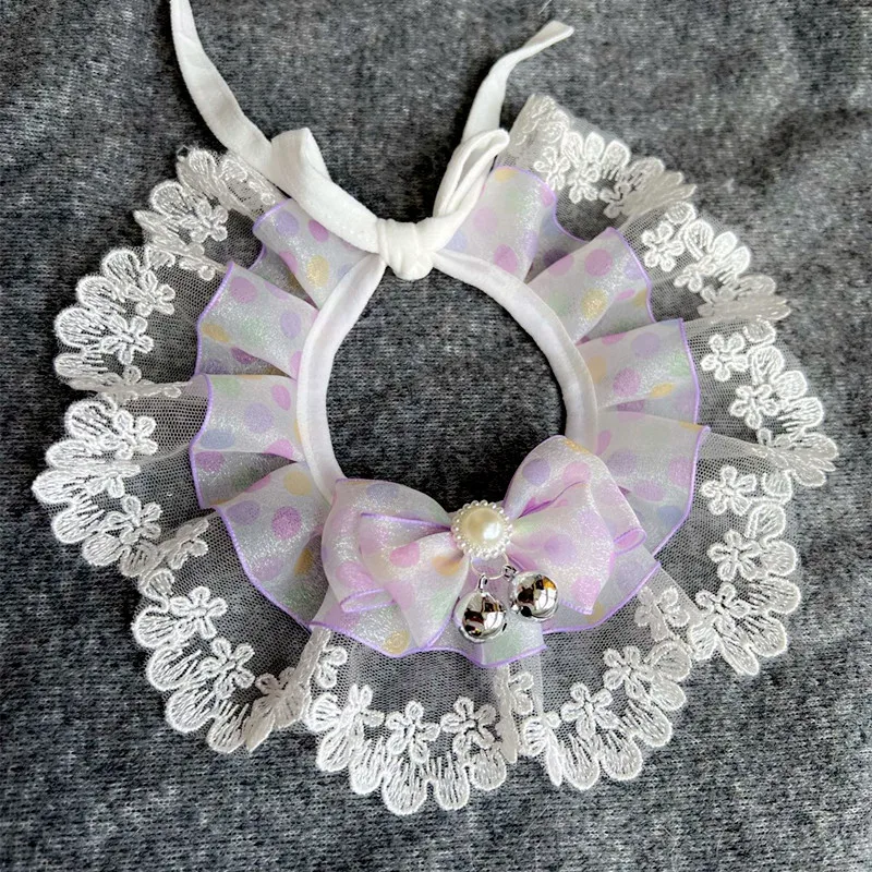 Dulce rosa púrpura gato perro encaje Collar campana colgante pajarita Baberos perro Collar para pequeño