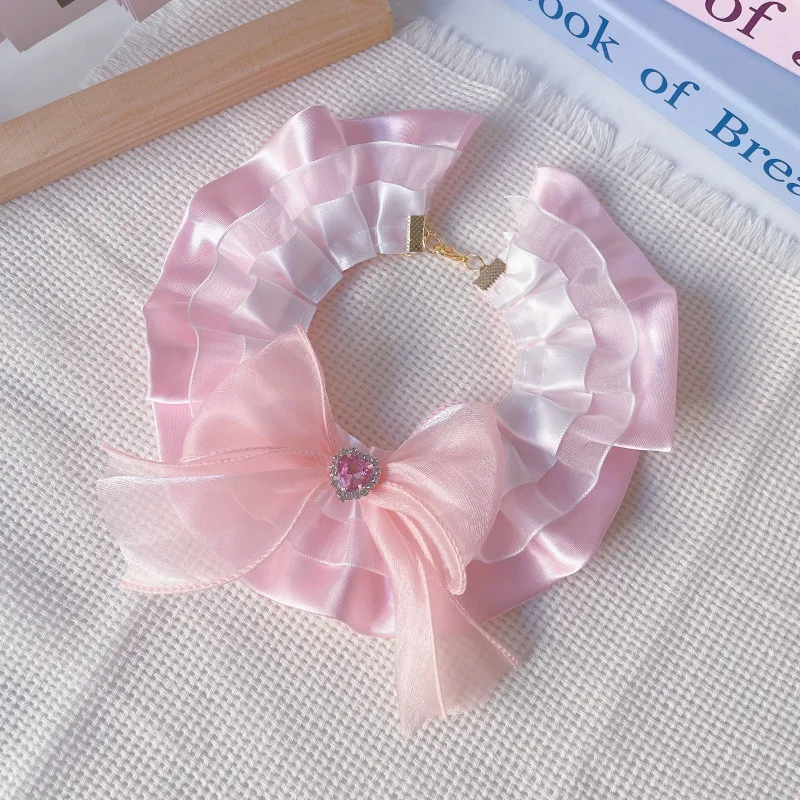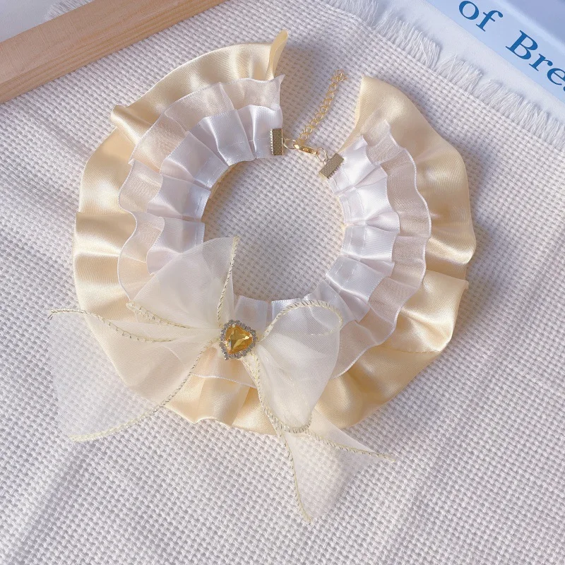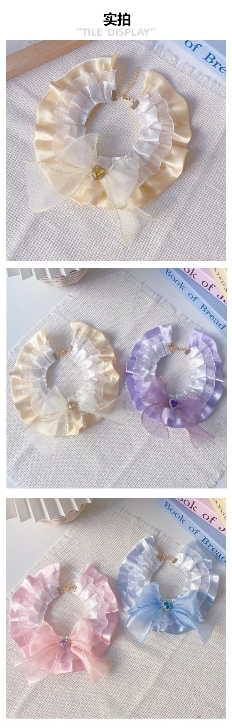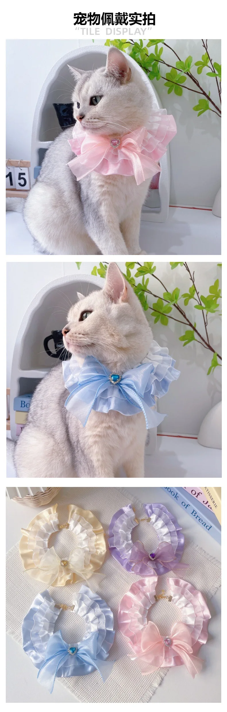 Collar de encaje de primavera para mascotas, bufanda con lazo de princesa y gato, Collar de malla de encaje para gatitos, toalla de baba, accesorios para perros pequeños