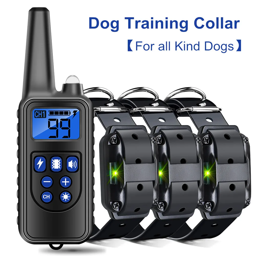 Collar eléctrico de entrenamiento para perros de 800m, entrenador impermeable para perros, Collar de corteza de perro con Control remoto, tapón antiladridos para perros de compañía