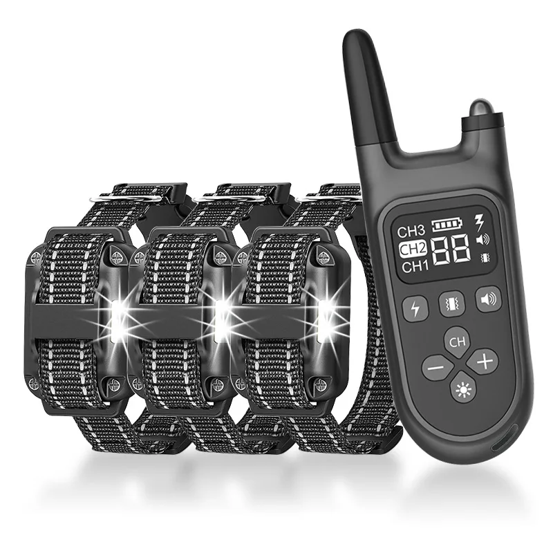 Lindo Collar de entrenamiento eléctrico negro de 800m para perros con vibración de choque, Control remoto de sonido, artefacto de entrenamiento para mascotas para 1/2/3 perros