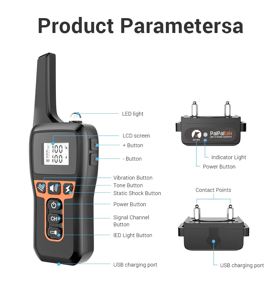 Descripción del productoModeloPD 529-1RecargableSIResistente al aguaSÍ, IP67Función VentajaControl remoto de 1000 metros, 100 niveles ajustables, el mejor vendedor de AmazonAhorro de energíaSí, súper ahorro de energía, cuando se carga 2 horas, podría funcionar 60 díasCollarCollar de nailon reflectante negro ajustable.Composición de la bateríaPolímero de litioCertificación del productoCE, ROHS, FCCOEMAceptar