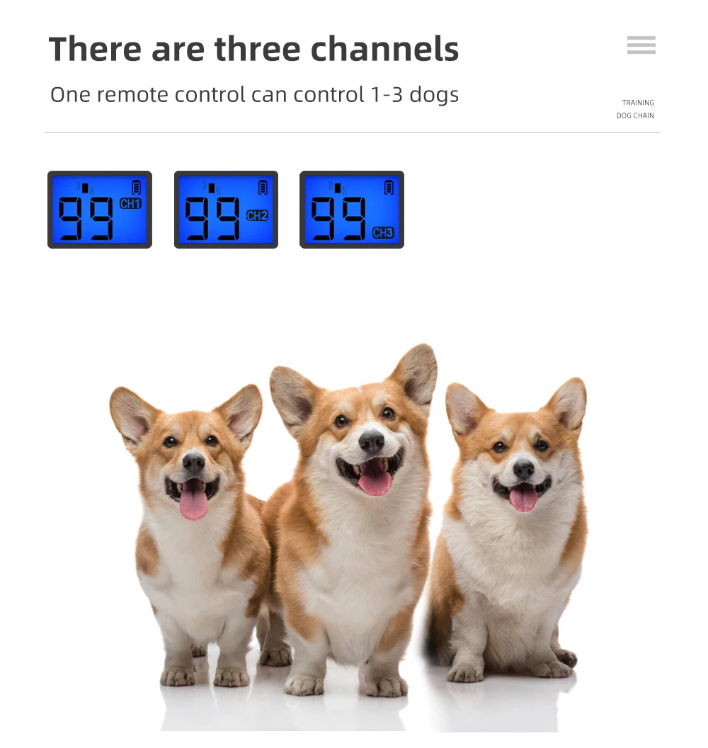 2.Niveles ajustables: los niveles de vibración y choque son ajustables de 1 a 99, y se recomienda probar los niveles gradualmente para encontrar el adecuado cuando usa este sistema de entrenamiento para mascotas por primera vez.