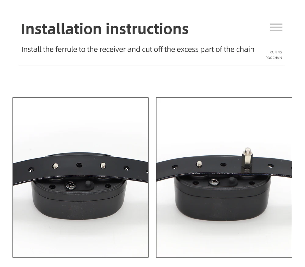1. Diseño totalmente impermeable: el receptor tiene un rendimiento súper impermeable, por lo que su mascota puede nadar o caminar bajo la lluvia con él.