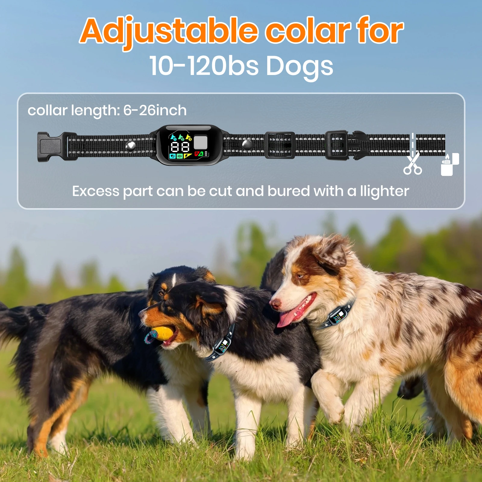 【Alcance de 3300 pies y se adapta a la mayoría de los perros】Nuestros collares de adiestramiento para perros tienen un alcance de hasta 3300 pies, lo que permite a los perros viajar más lejos.El collar de corteza para perros grandes, medianos y pequeños es ajustable para adaptarse a perros que pesen entre 5 y 150 libras y cuellos de 8 y 30 pulgadas.Puedes seguir usándolo a medida que tu perro crece.
