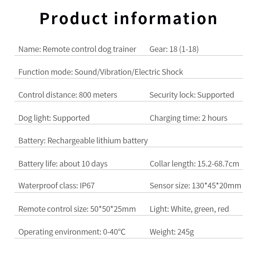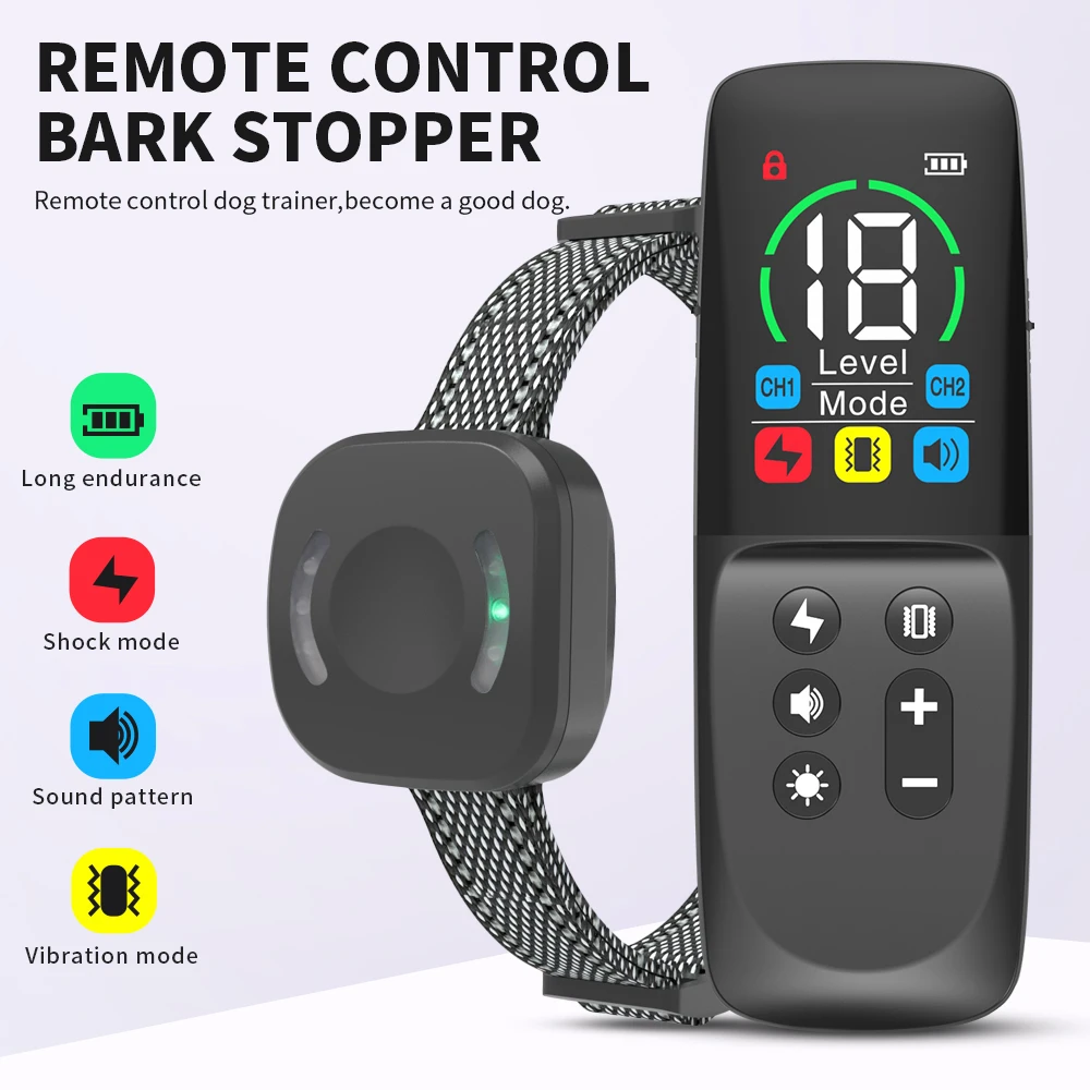 Collar de entrenamiento para perros de 800M, entrenador de perros con Control remoto de 18 niveles, Collar de vibración de choque impermeable para perros con recargable tipo C