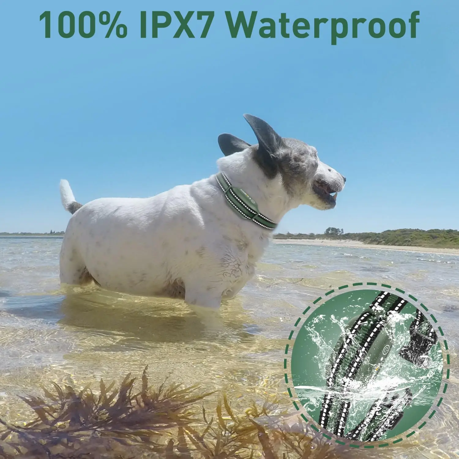 【Collar impermeable IP67】 Nuestro collar electrónico para entrenamiento de perros está diseñado con tecnología impermeable IPX7, sus perros pueden jugar bajo la lluvia o incluso nadar con el collar puesto