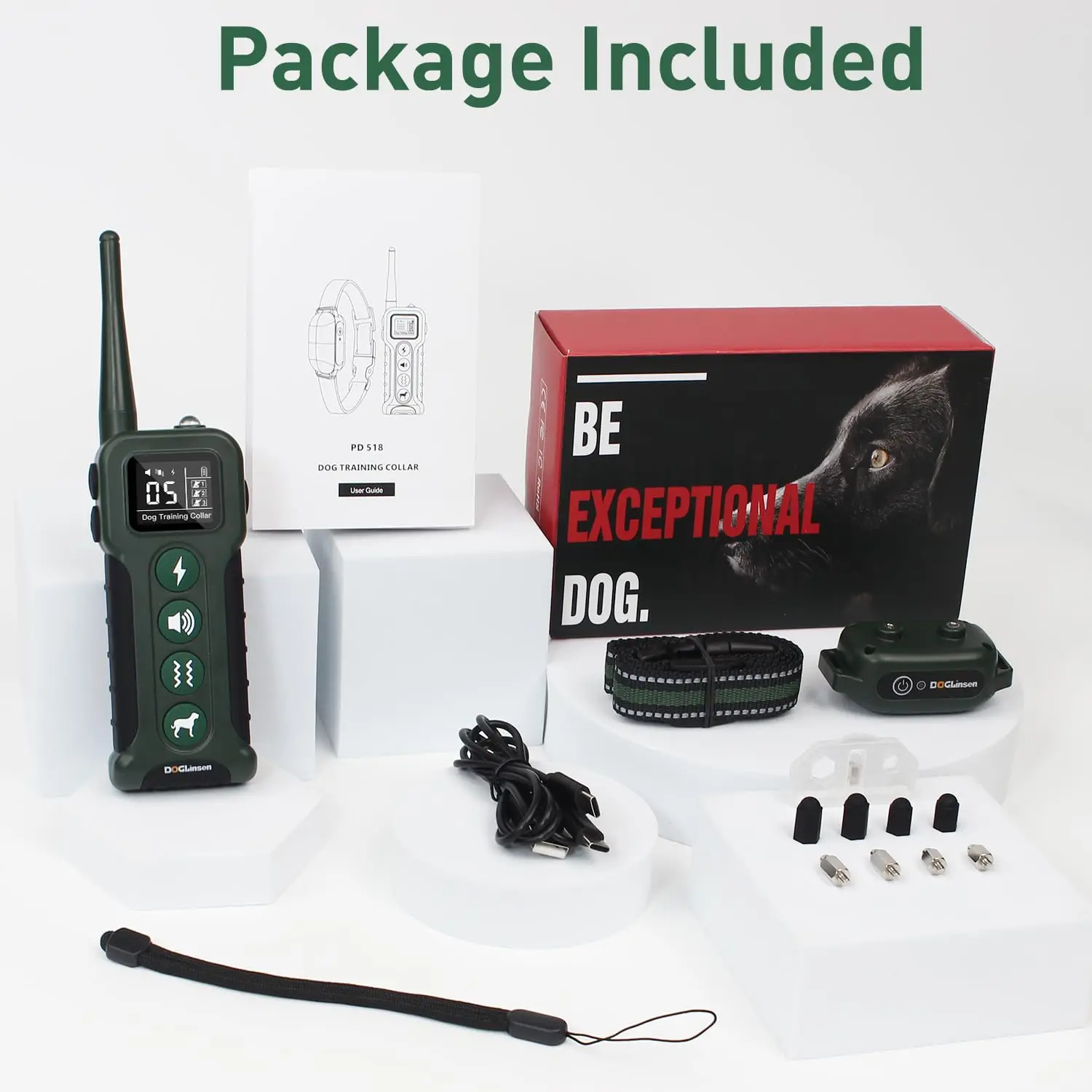 【Alcance remoto extendido de 3300 pies】 Nuestra antena extraíble de este collar de choque está diseñada para permitir un rango de control de hasta 3300 pies, lo que le permite entrenar a su perro en interiores y exteriores.