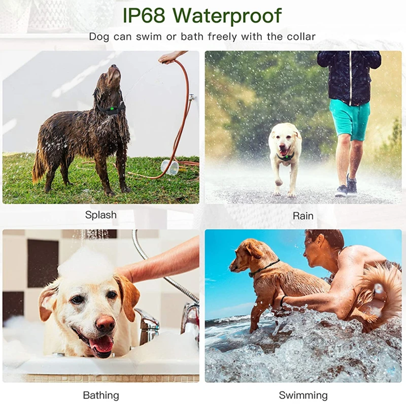 ③.IP68 Waterproof and Adjustable Electronic Training Collar: The training collar receiver is waterproof and can provide your pet with maximum flexibility in outdoor activities. Your dog can swim or bathe freely while wearing a collar. But when the receiver is immersed in water, please make sure the charging port is closed, please don't put it in the water for a long time.