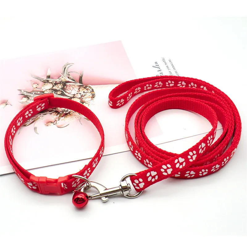 Collar con estampado de pata de perro para mascota, conjunto de cuerda de tracción para cachorro, varios colores, accesorios ajustables para cachorro y gato, suministros para mascotas, 1,2 M