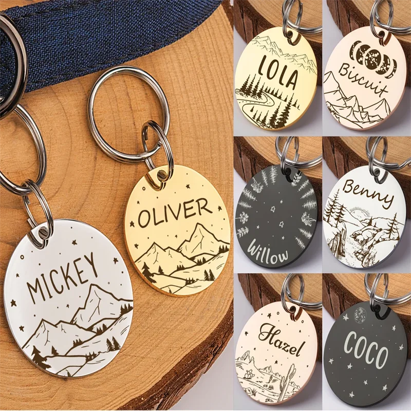 Collar personalizado con etiqueta de identificación de perro y gato, colgante grabado para mascota, suministros de abalorios de cadena para productos con nombre de etiquetas
