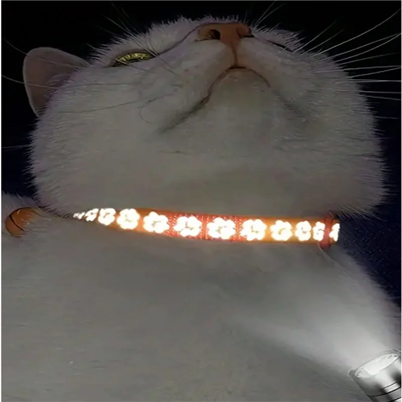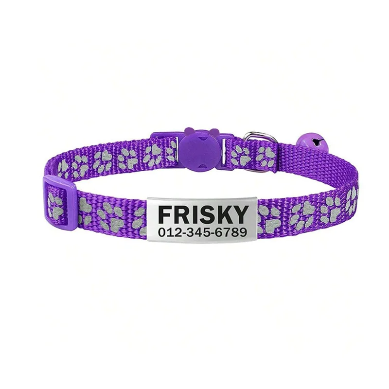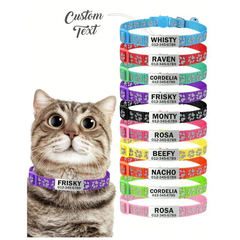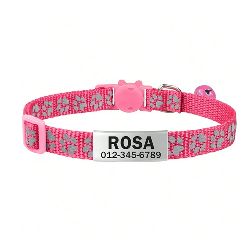 Collar con etiqueta de identificación de perro personalizado, pata reflectante, nailon ajustable con campana, grabado, collar de gatitos y cachorros, número de nombre personalizado