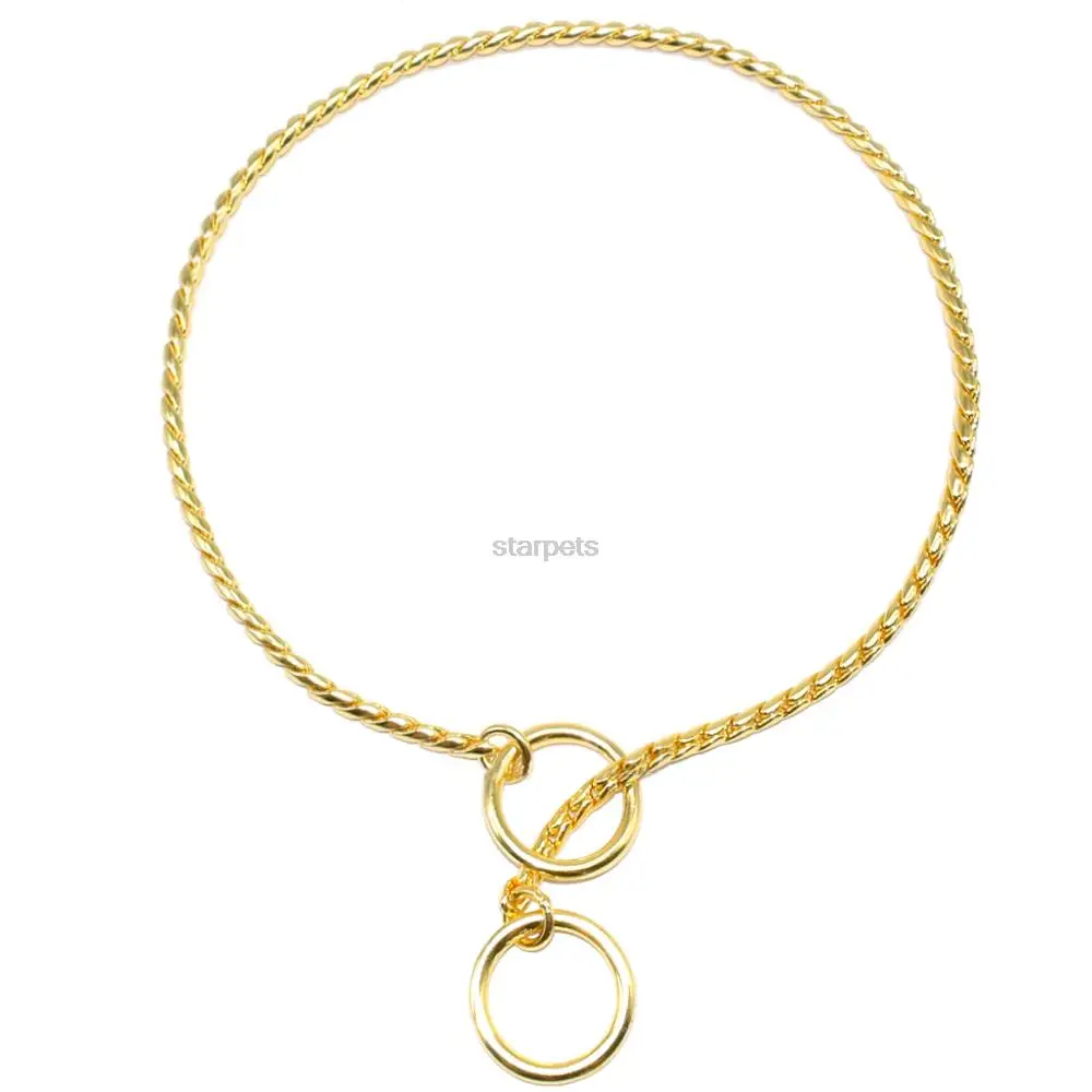 Collar de exposición para perros con cadena de serpiente, cadena de Metal pesado, Collar de estrangulación para entrenamiento de perros, cromado o dorado fuerte de 3mm, 4mm y 5mm