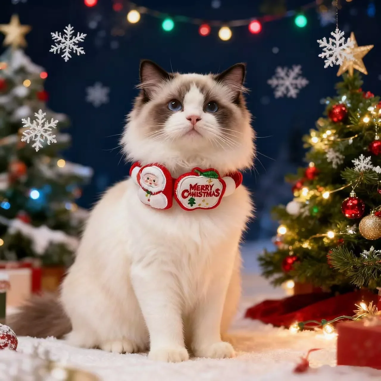 Collar festivo para mascotas, gatos, perros, con patrones de renos de Papá Noel, cinta mágica, accesorio navideño para decoración navideña