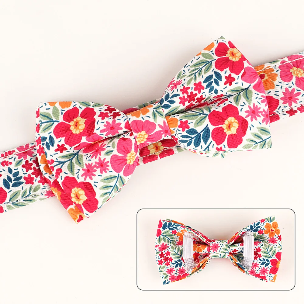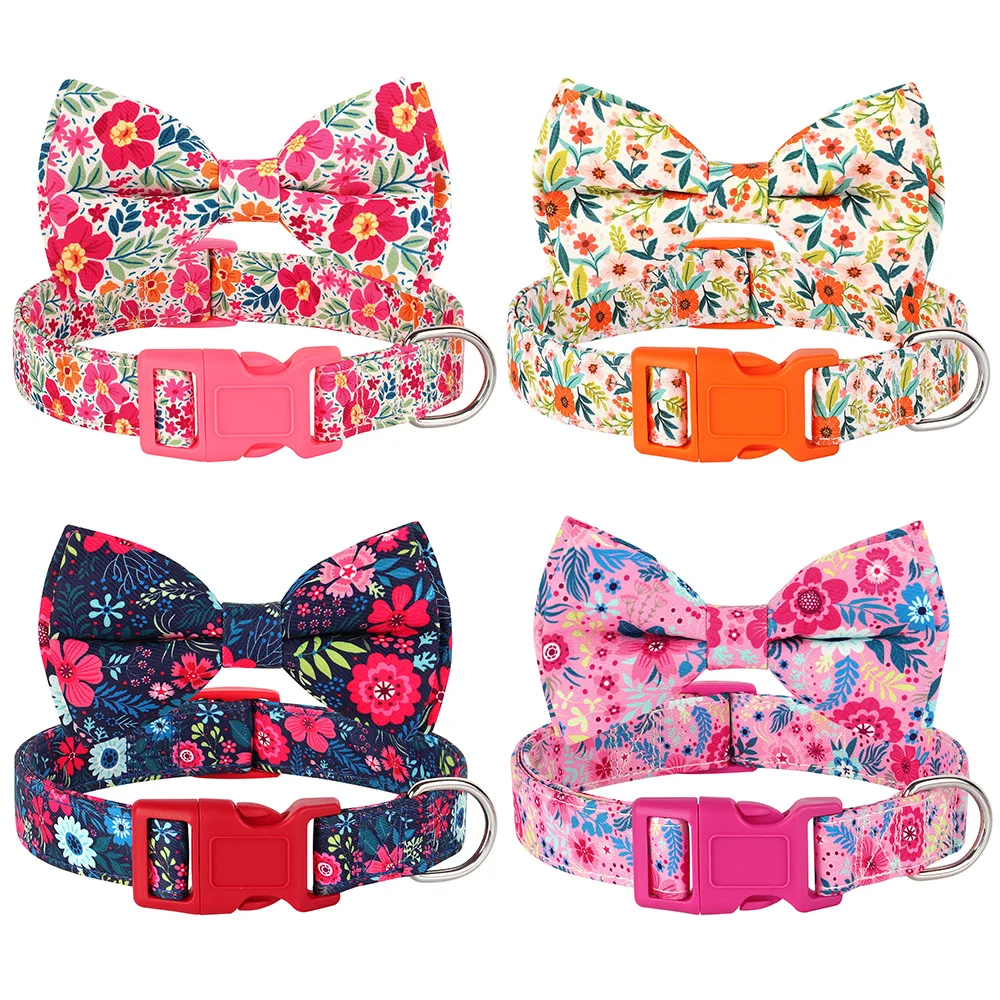 Collar Floral con lazo para perro, Collar de nailon con flores para perros, collares acolchados para cachorros, ajustables para perros pequeños, medianos y grandes, Pug Chihuahua