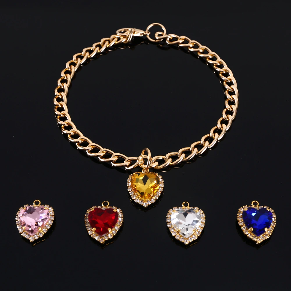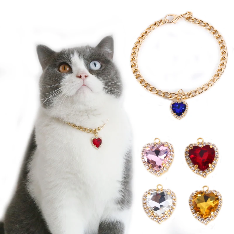 Collar de gato a la moda para gatos, cachorros, diseño de lujo, accesorios de joyería para mascotas, Collar de cadena con colgante de corazón de diamante