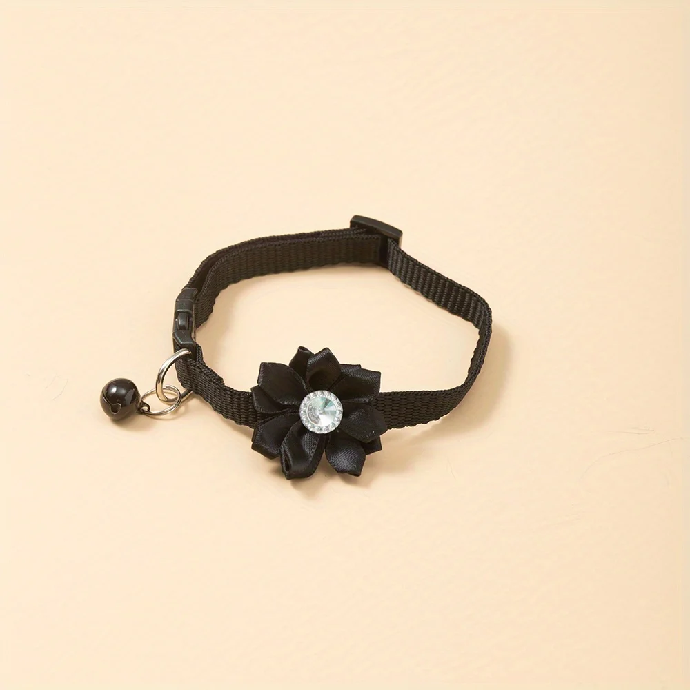 Collar de gato adornado con flores de nailon con campana, Collar ajustable para mascotas para gatos y perros pequeños, varios colores disponibles - One Si