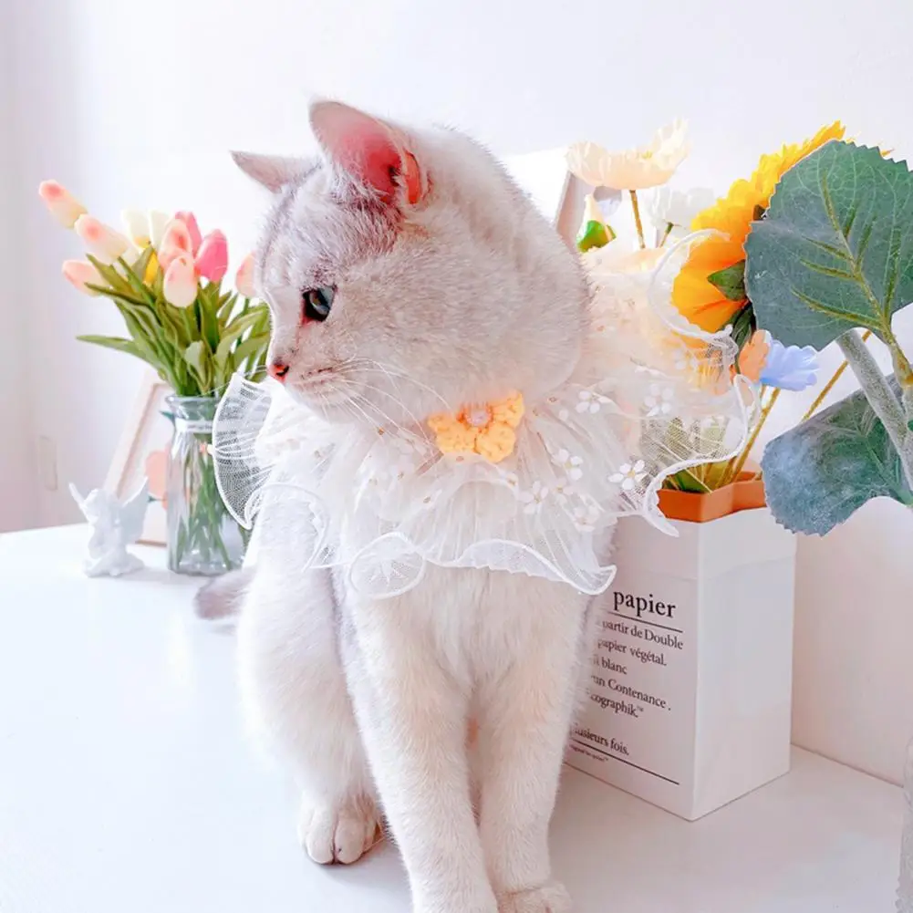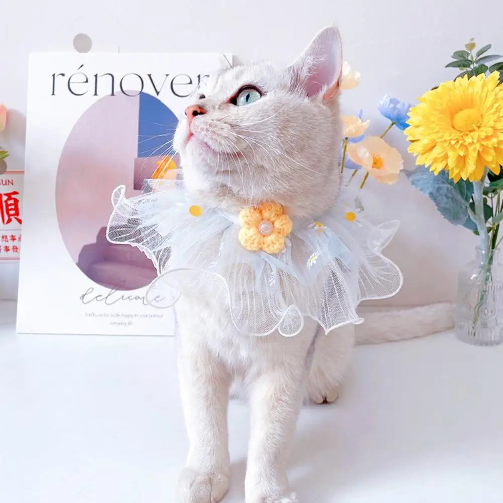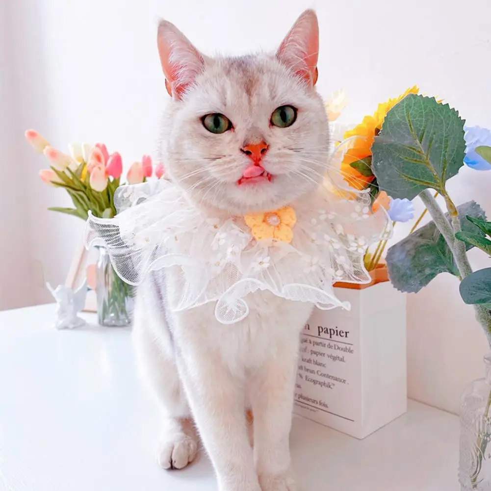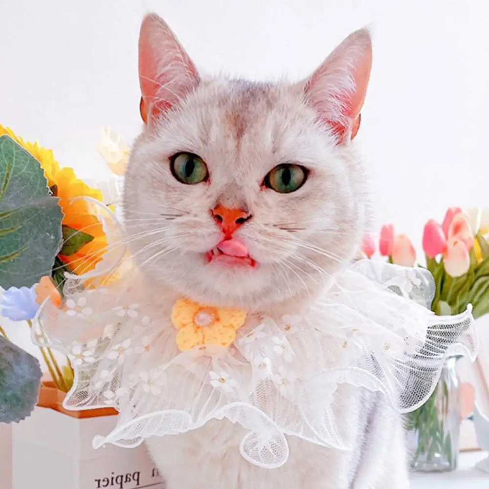 Collar para mascotas Borde de encaje Transpirable Moda Baberos para mascotas Bufanda Accesorios de corona hechos a mano para el exterior