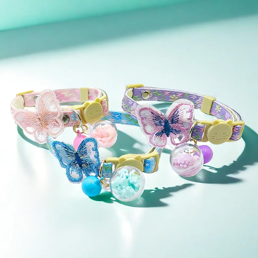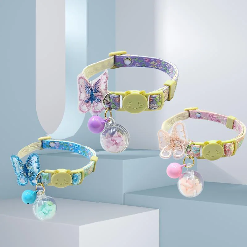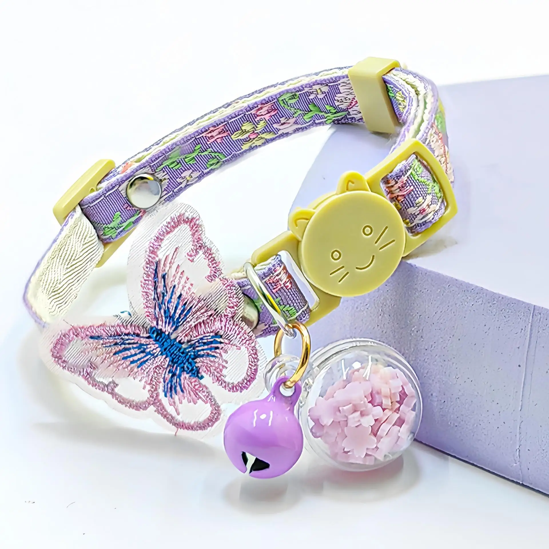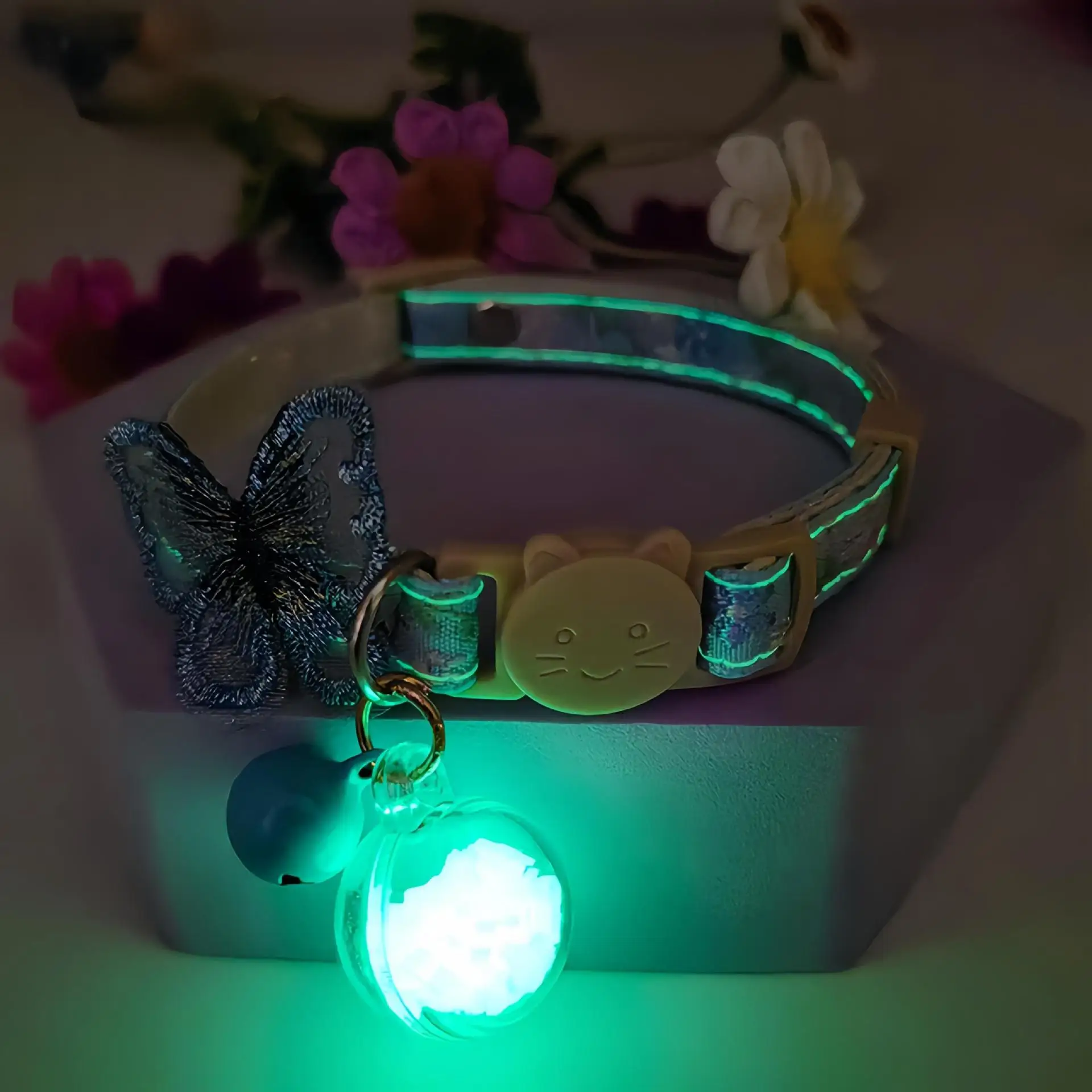 Collar de gato que brilla en la oscuridad con diseño de mariposa y floral, lindo collar de gato, collar para gatos de interior/exterior, sin batería,