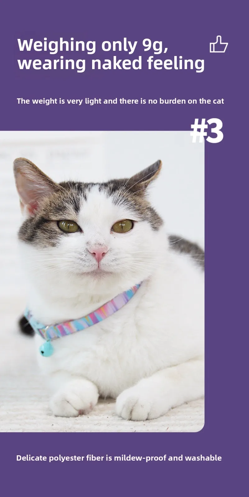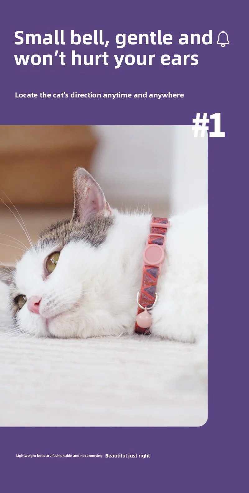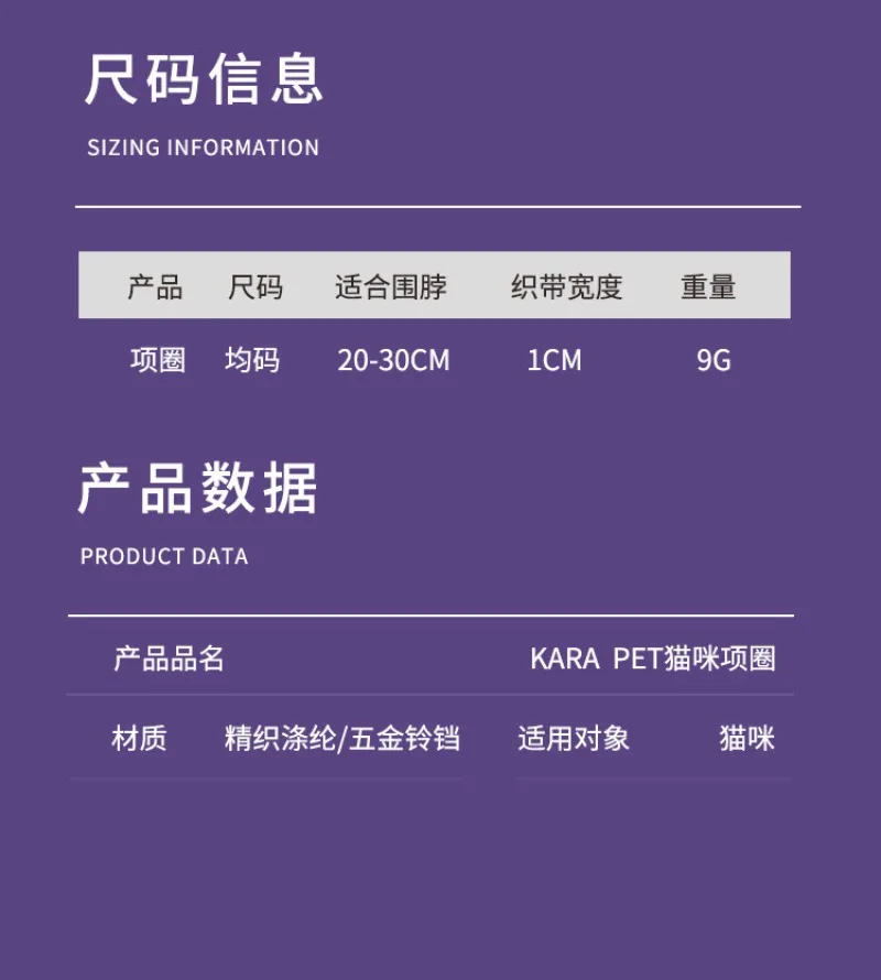 Características: 1.Las campanas pequeñas son suaves y no dañan los oídos. Localice los movimientos del gato en cualquier momento y en cualquier lugar 2.Hebilla antienredos de POM resistente al desgaste de alta resistencia Caño automático de interferencias de tracción, para prevenir la asfixia 3.El peso es muy querido.El gato no tiene ninguna carga para usarlo. 4.Delicada fibra de poliéster, resistente al moho y lavable. 5.Se puede ajustar libremente para adaptarse a diferentes formas del cuerpo.